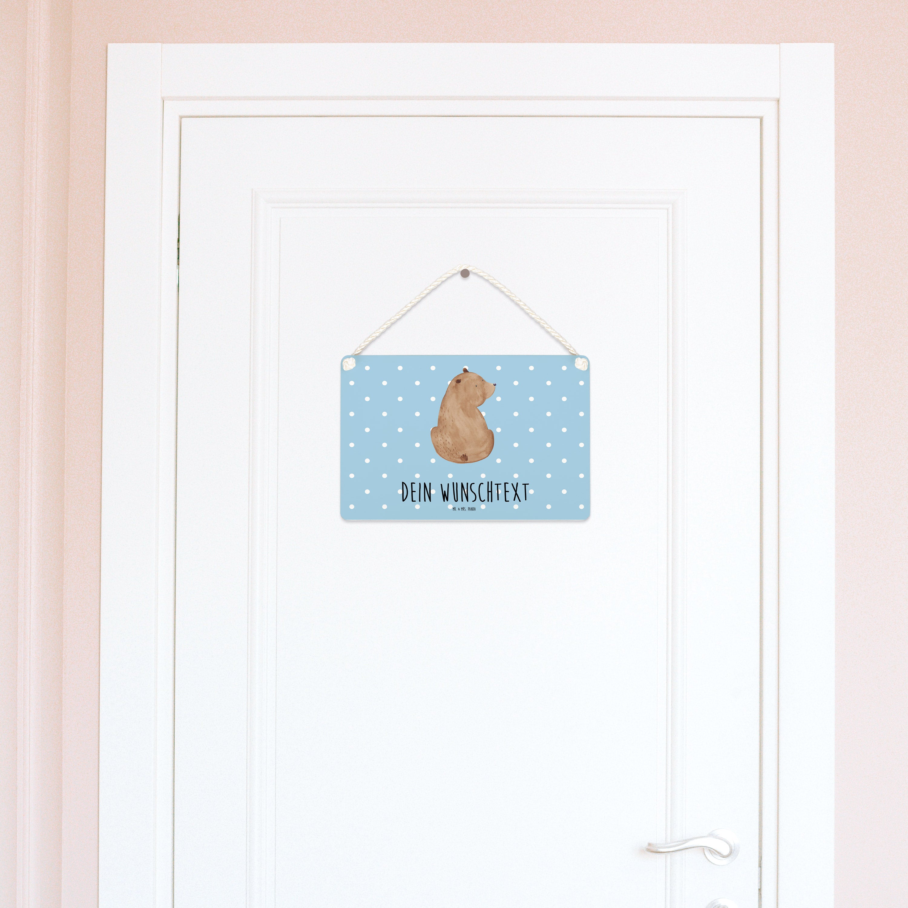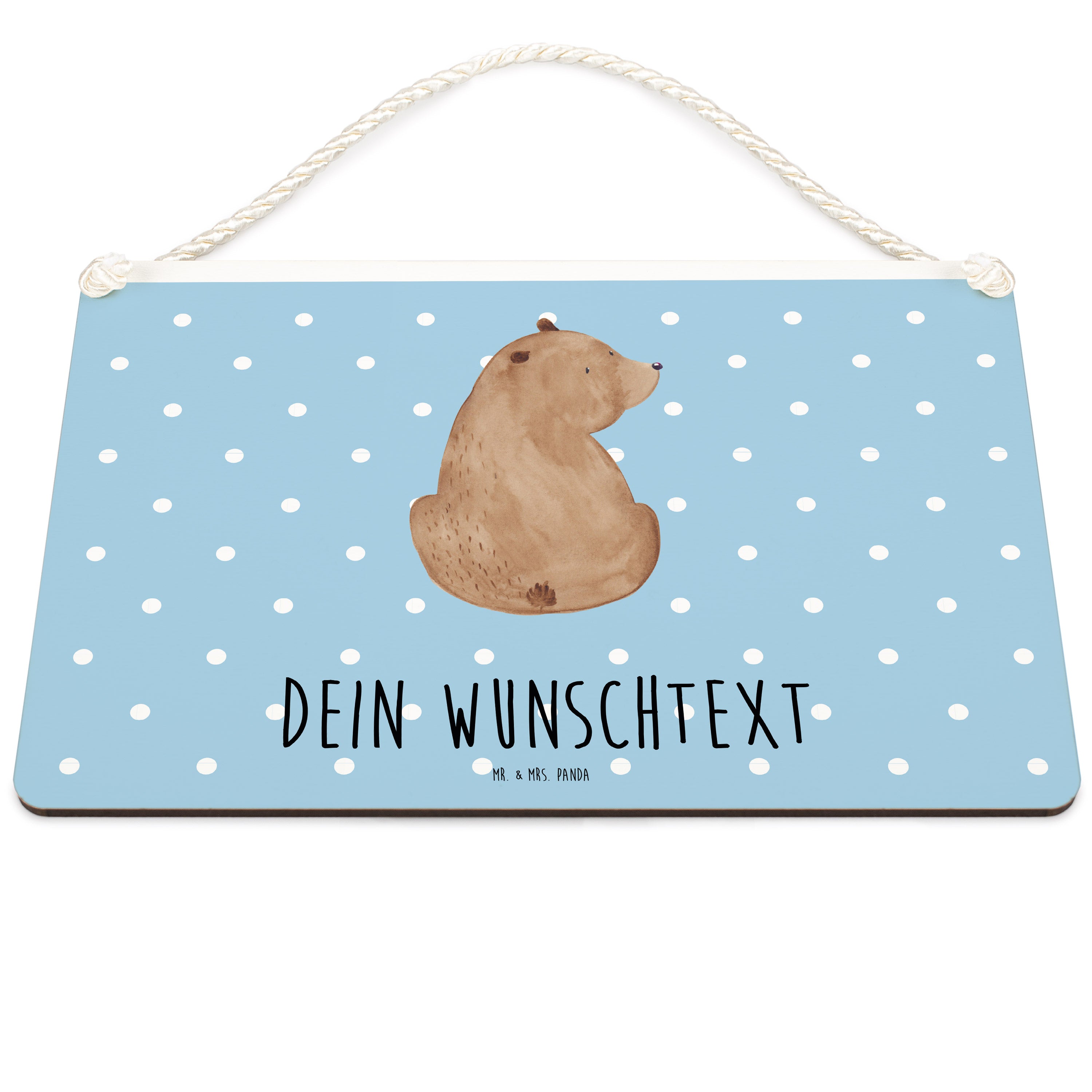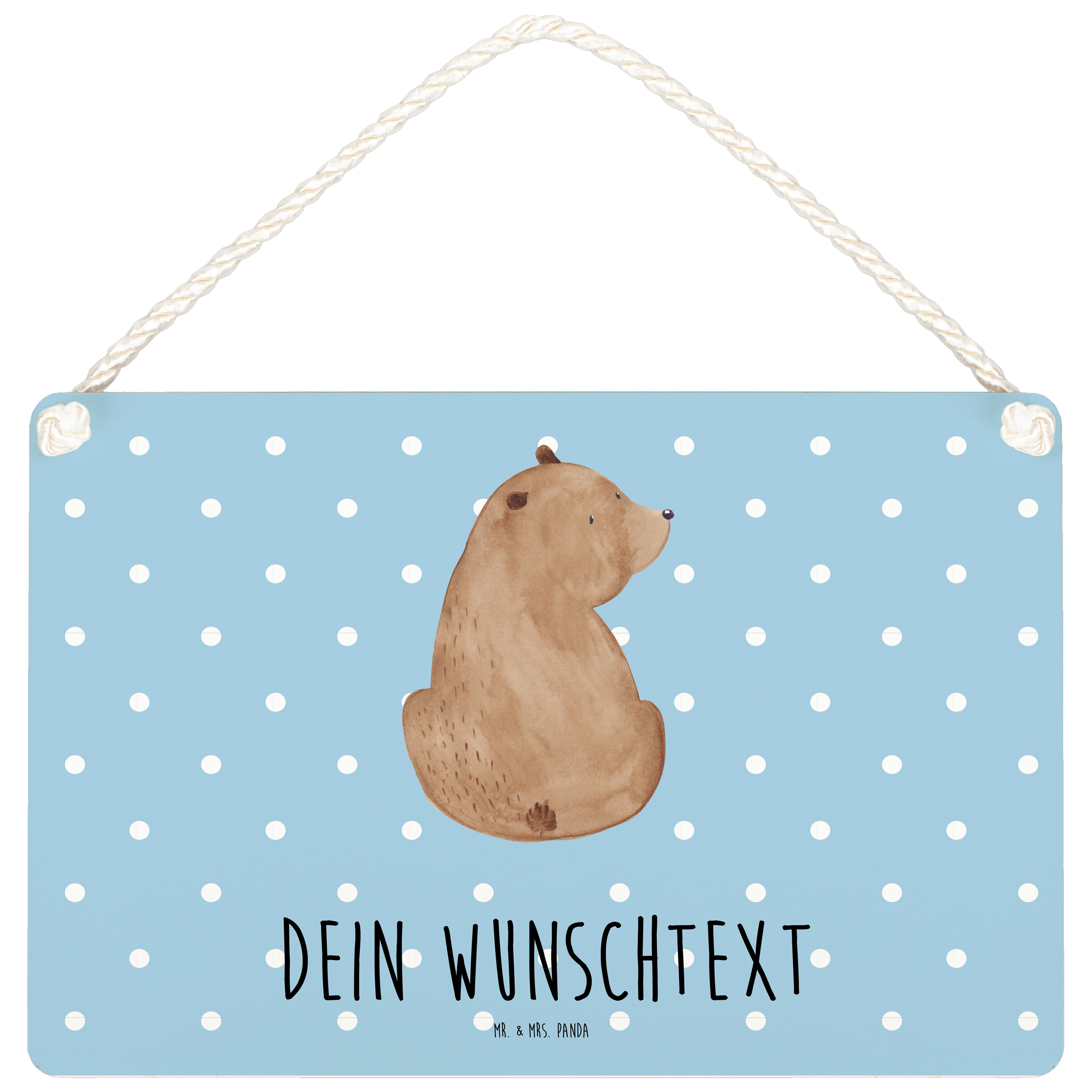 Personalisiertes Deko Schild Bär Schulterblick - DIN A6 - Weiß