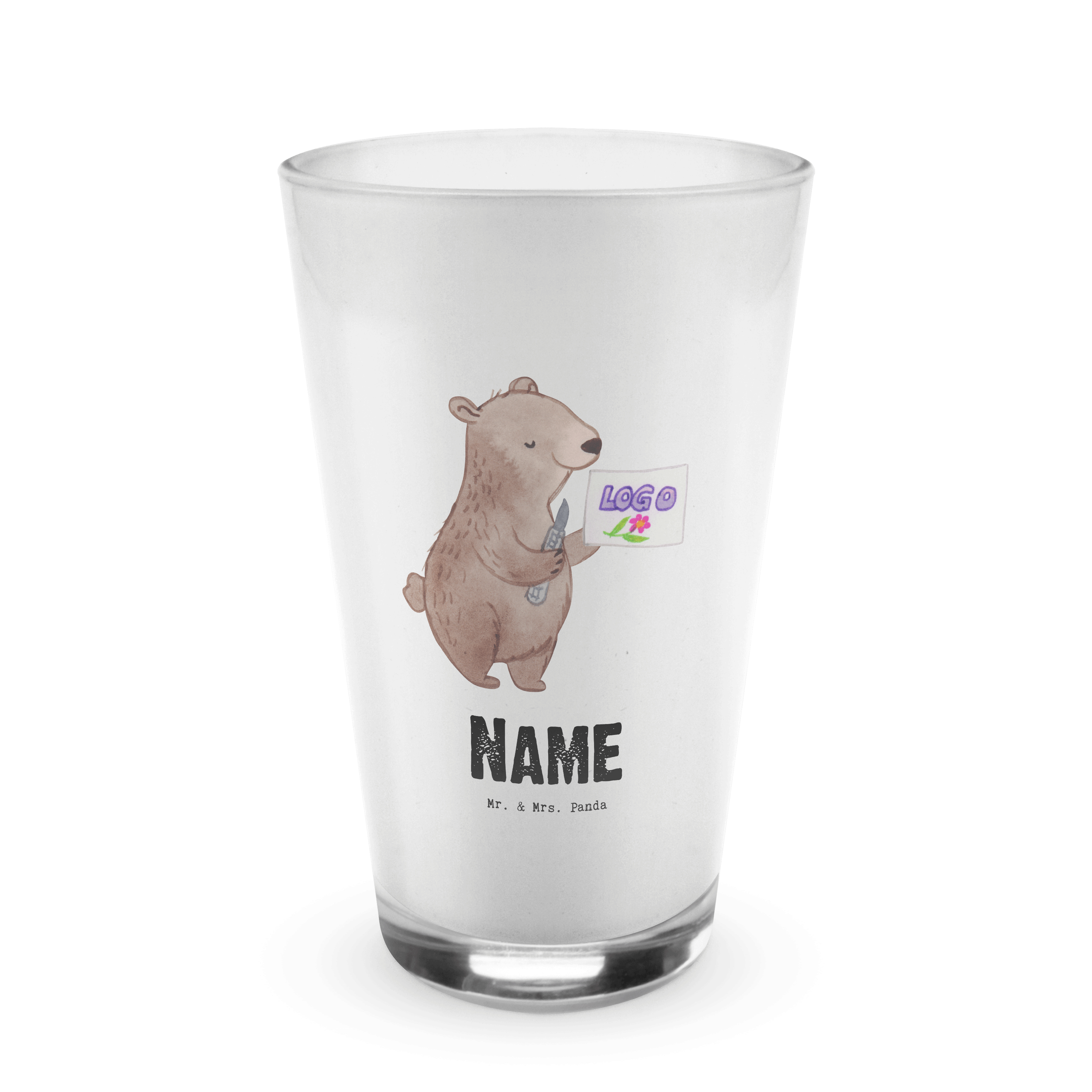 Personalisiertes Glas Kaufmann für Marketingkommunikation mit Herz