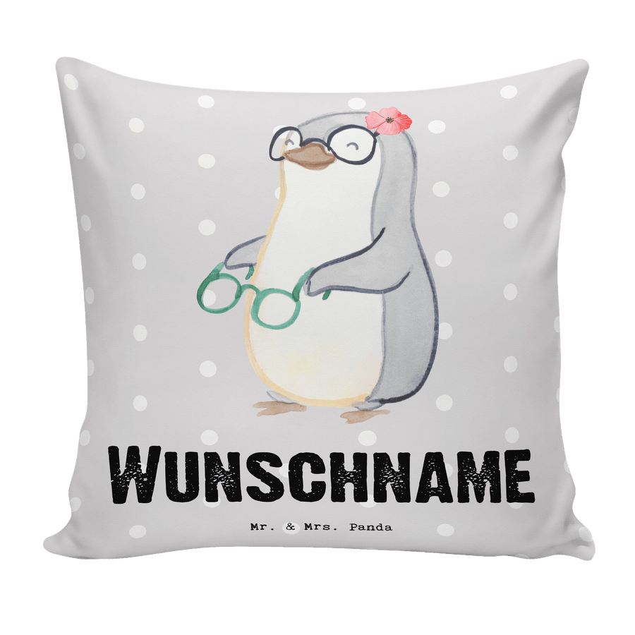 Personalisiertes Kissen Augenoptikerin mit Herz Kissen, personalisiert, Name, Wunschname, bedrucken, Kopfkissen, Beruf, Ausbildung, Jubiläum, Abschied, Rente, Kollege, Kollegin, Geschenk, Schenken, Arbeitskollege, Mitarbeiter, Firma, Danke, Dankeschön, Augenoptikerin, Optikerin, Augenärztin, Optometristin, Brillenverkäuferin, Brillengeschäft, Eröffnung