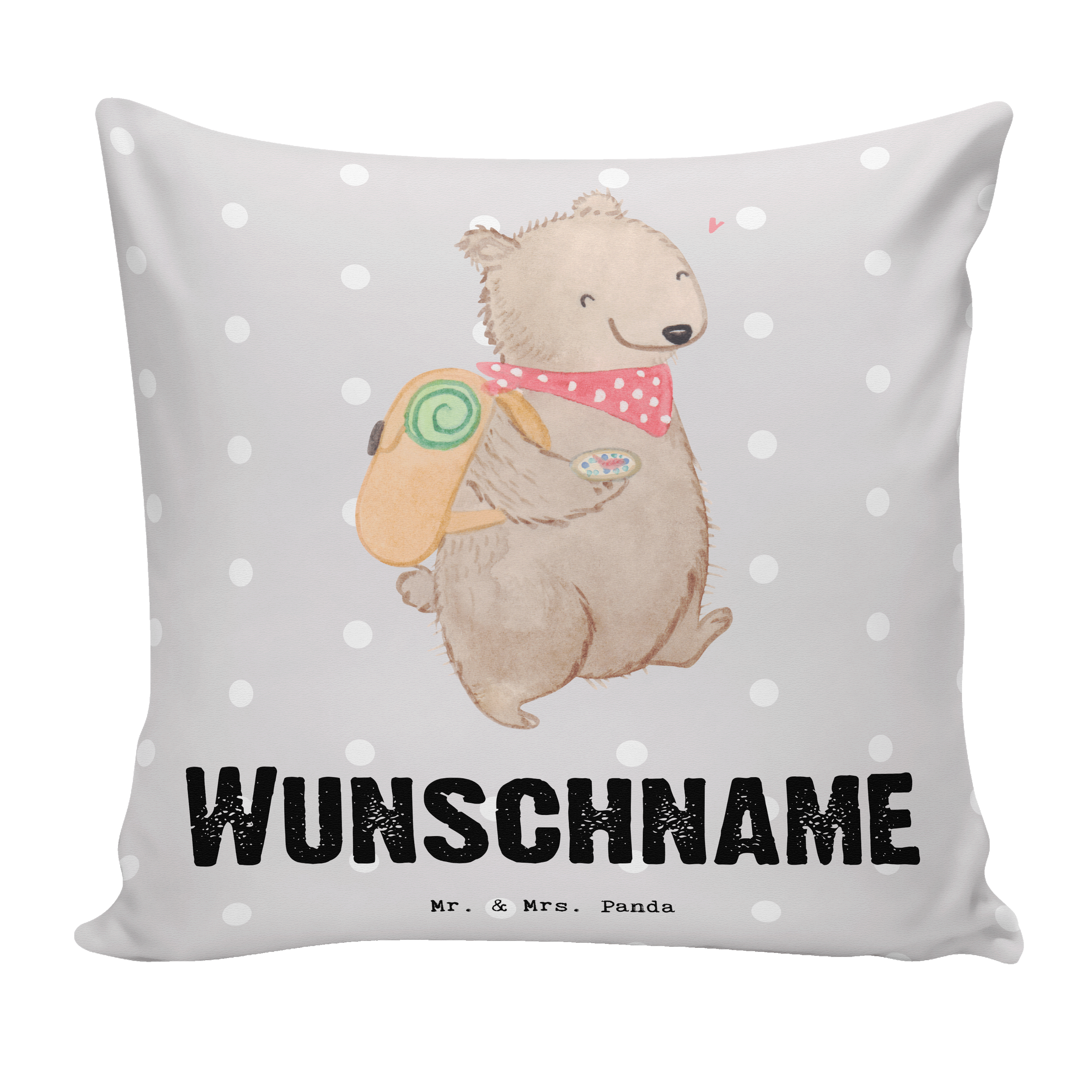 Ein wunderschönes personalisiertes kuscheliges Kissen von Mr. & Mrs. Panda mit wunderbar weicher entnehmbarer Füllung - Die Kissenhülle bzw. der Kissenbezug wurde liebevoll von uns bedruckt und mit einer superweichen Kissenfüllung versehen. Das Kopfkissen hat einen Reißverschluss zum Entnehmen der Füllung. Dein neues Kuschelkissen hat die Größe von 40x40 cm und ist auch perfekt als Sofakissen oder Dekokissen geeignet - das Kissen ist ebenfalls in der Größe 80x80 erhältlich. Bitte beachte, dass personalisierte Artikel vom Umtausch ausgeschlossen sind.