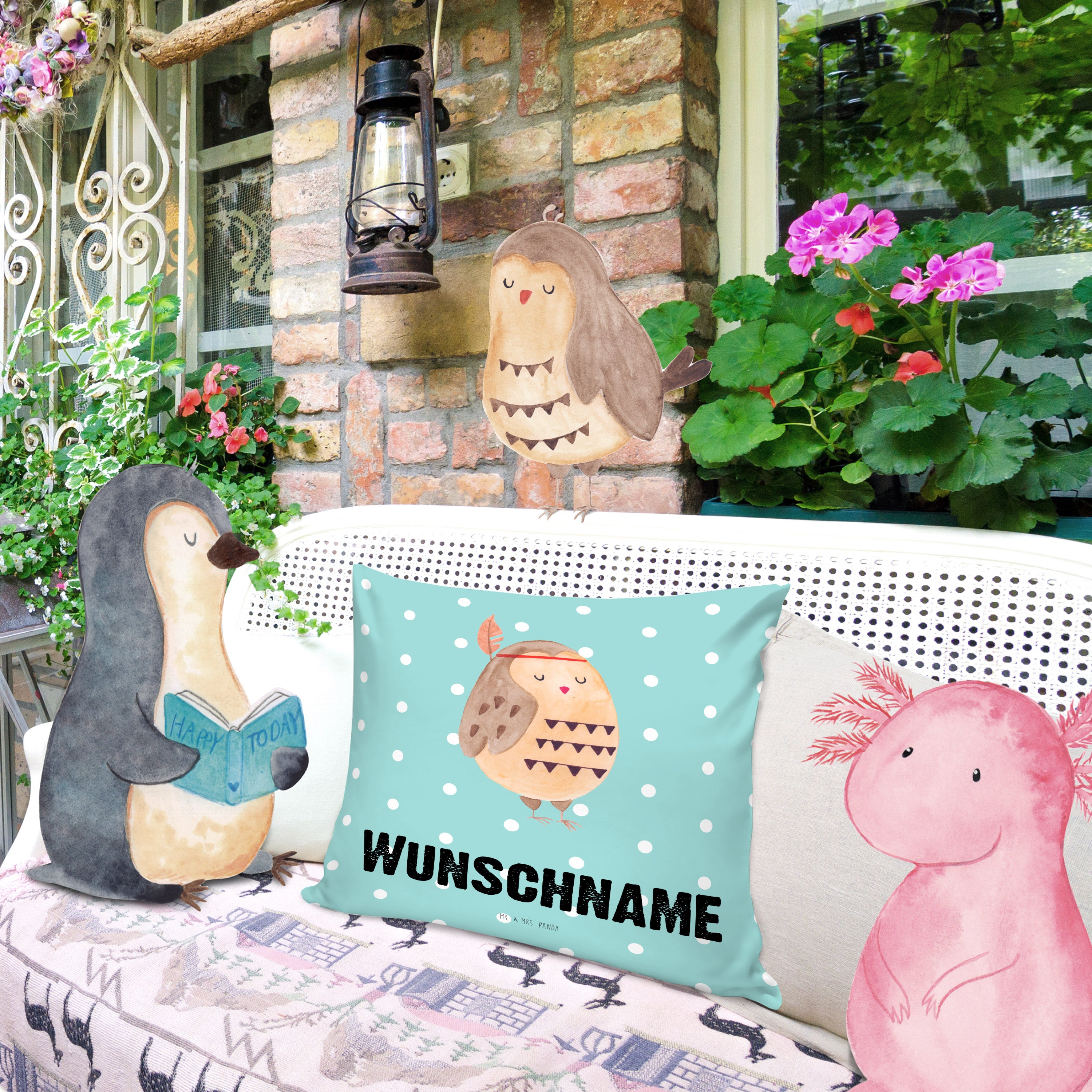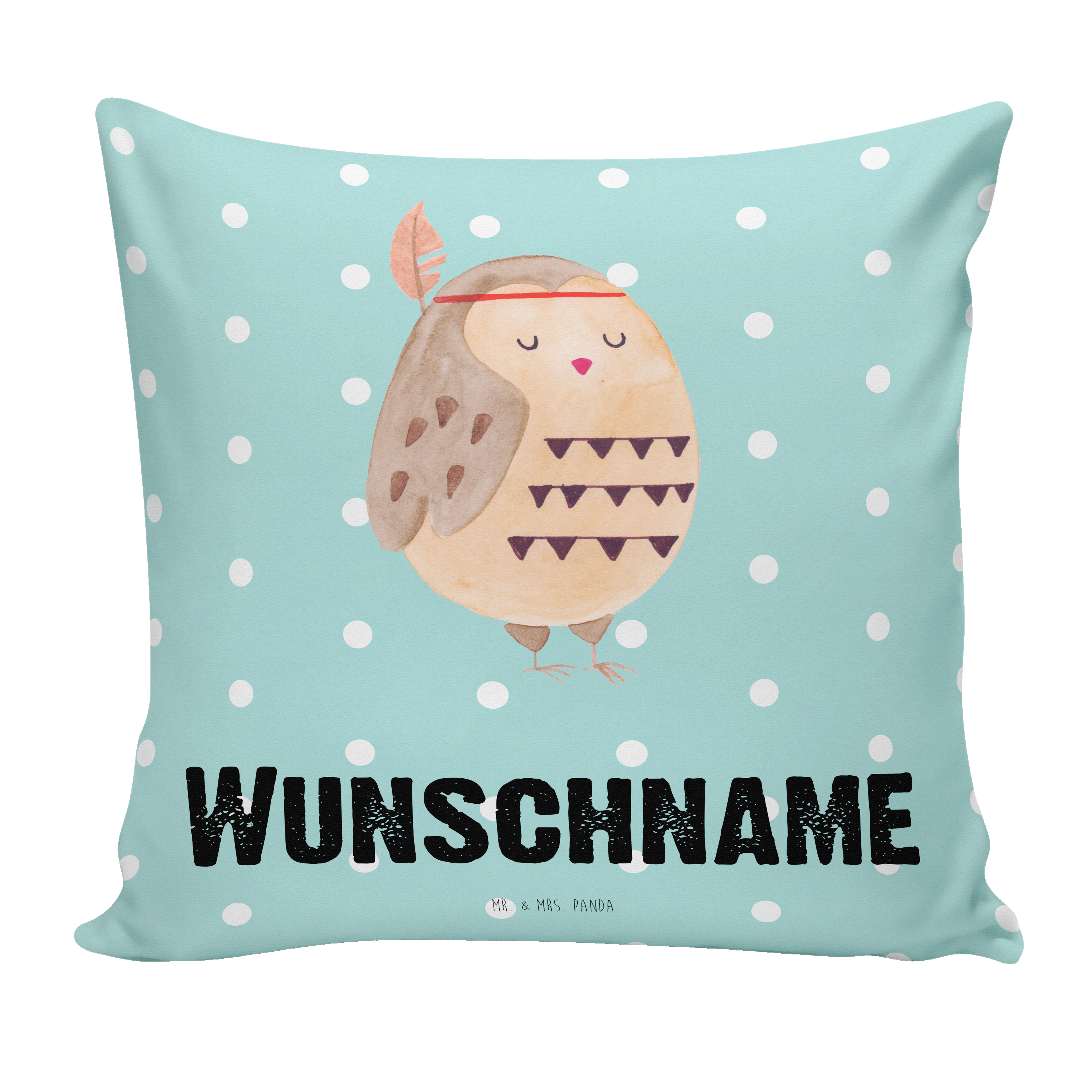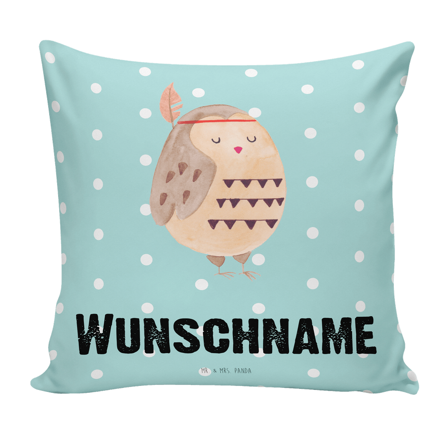 Personalisiertes Kissen Eule Federschmuck Kissen, personalisiert, Name, Wunschname, bedrucken, Kopfkissen, Eule, Eule Deko, Owl, Das Leben ist ein Abenteuer, Reisespruch, Federschmuck, Dekoration