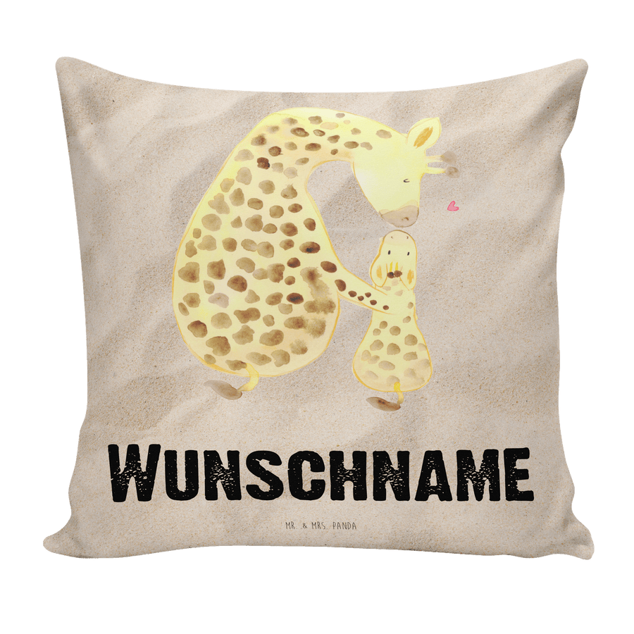 Personalisiertes Kissen Giraffe mit Kind Kissen, personalisiert, Name, Wunschname, bedrucken, Kopfkissen, Afrika, Wildtiere, Giraffe, Kind, Mutter, Mama, Tochter, Sohn, Lieblingsmensch