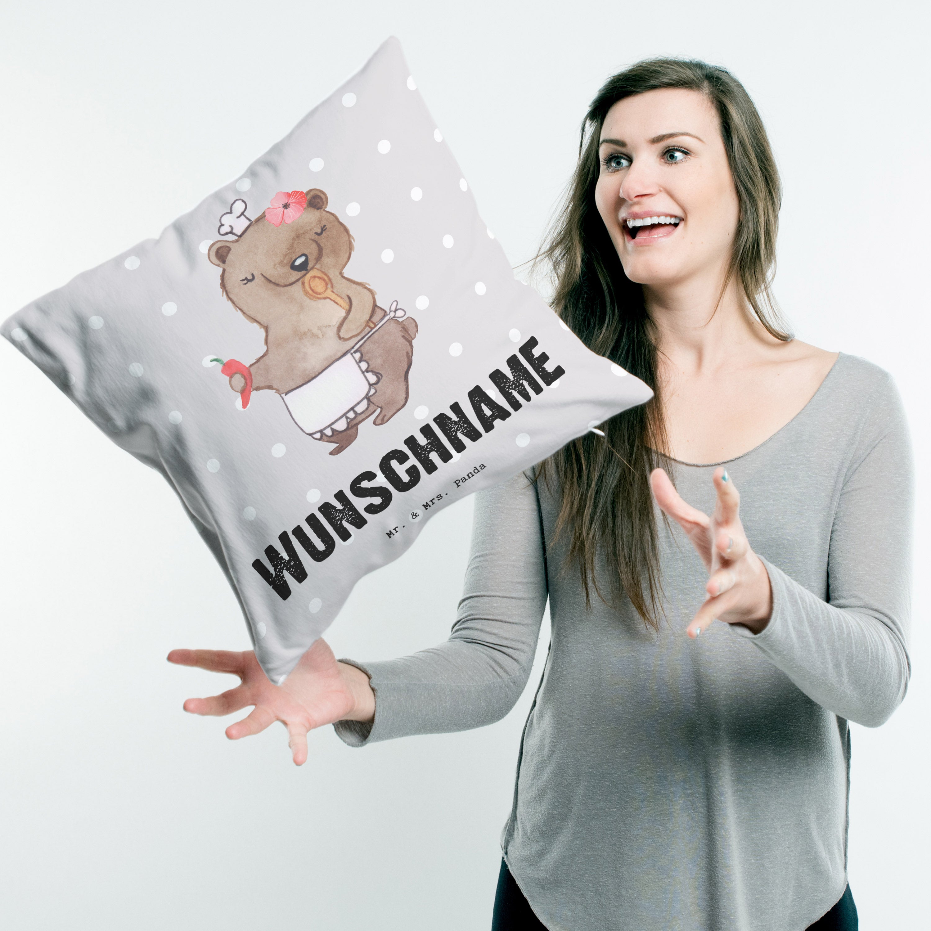 Personalisiertes Kissen Köchin mit Herz