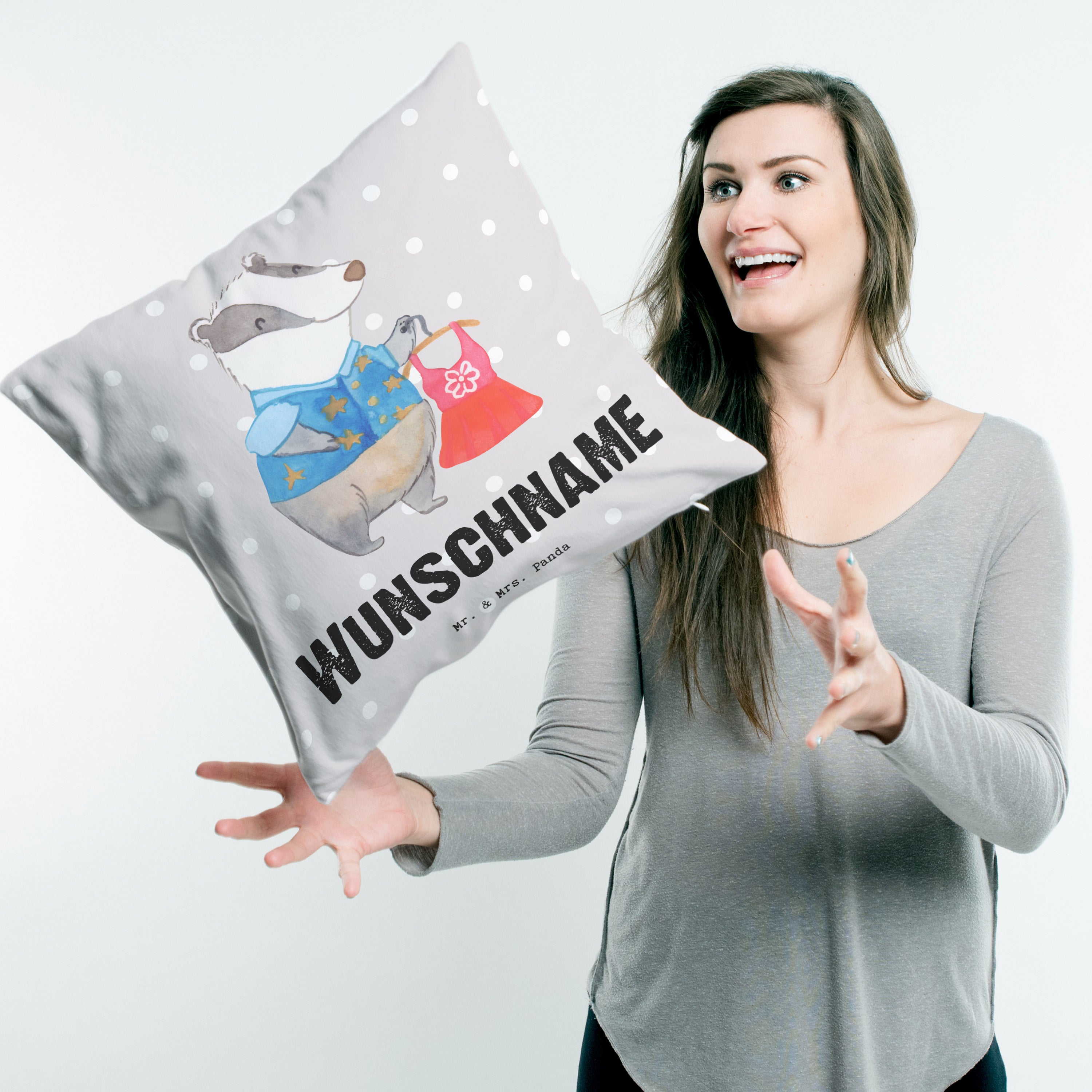 Personalisiertes Kissen Modeverkäuferin mit Herz