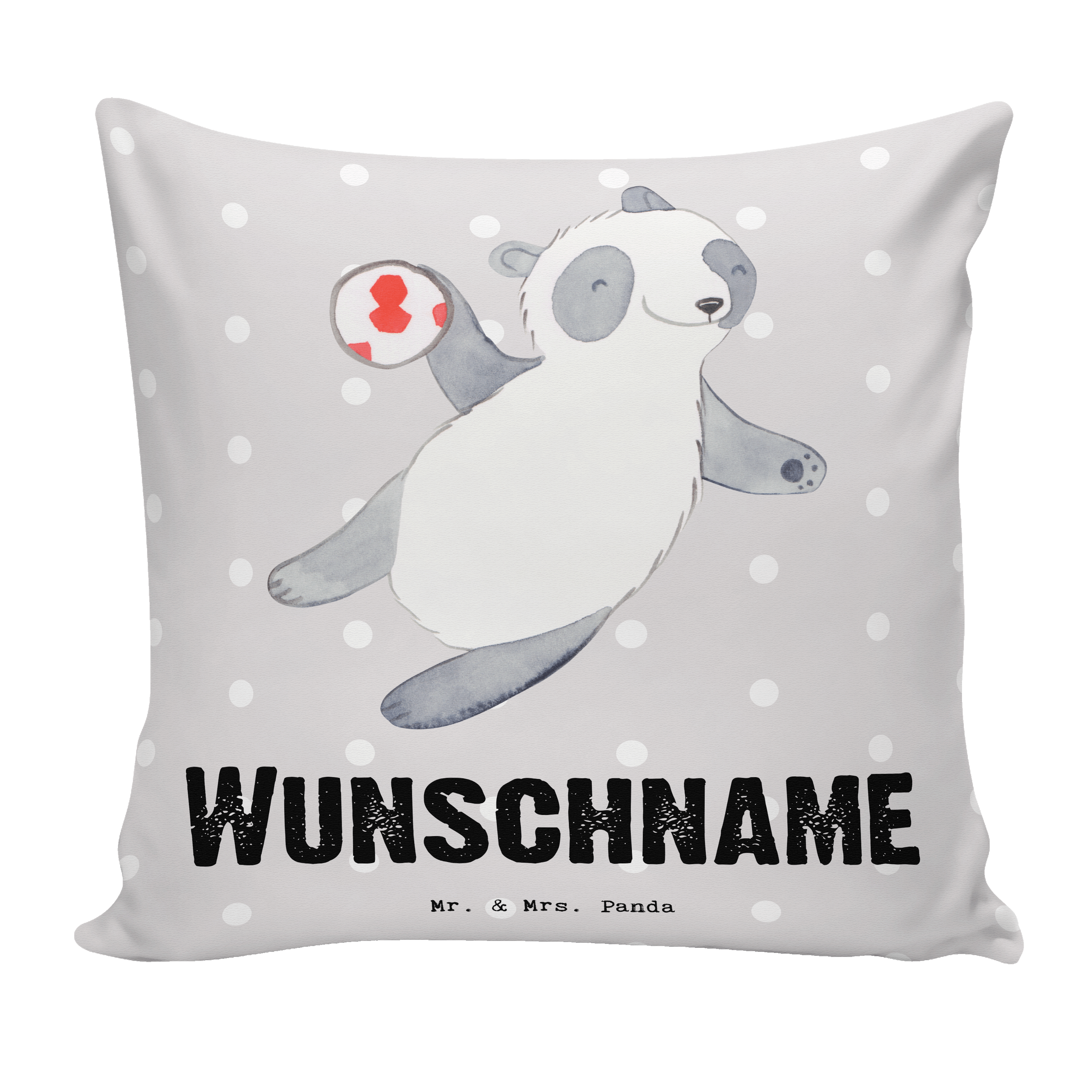 Personalisiertes Kissen Panda Handball spielen Tage Kissen, personalisiert, Name, Wunschname, bedrucken, Kopfkissen, Geschenk, Sport, Sportart, Hobby, Schenken, Danke, Dankeschön, Auszeichnung, Gewinn, Sportler, Handball spielen, Handball Turnier, Handball Club, Handball Verein