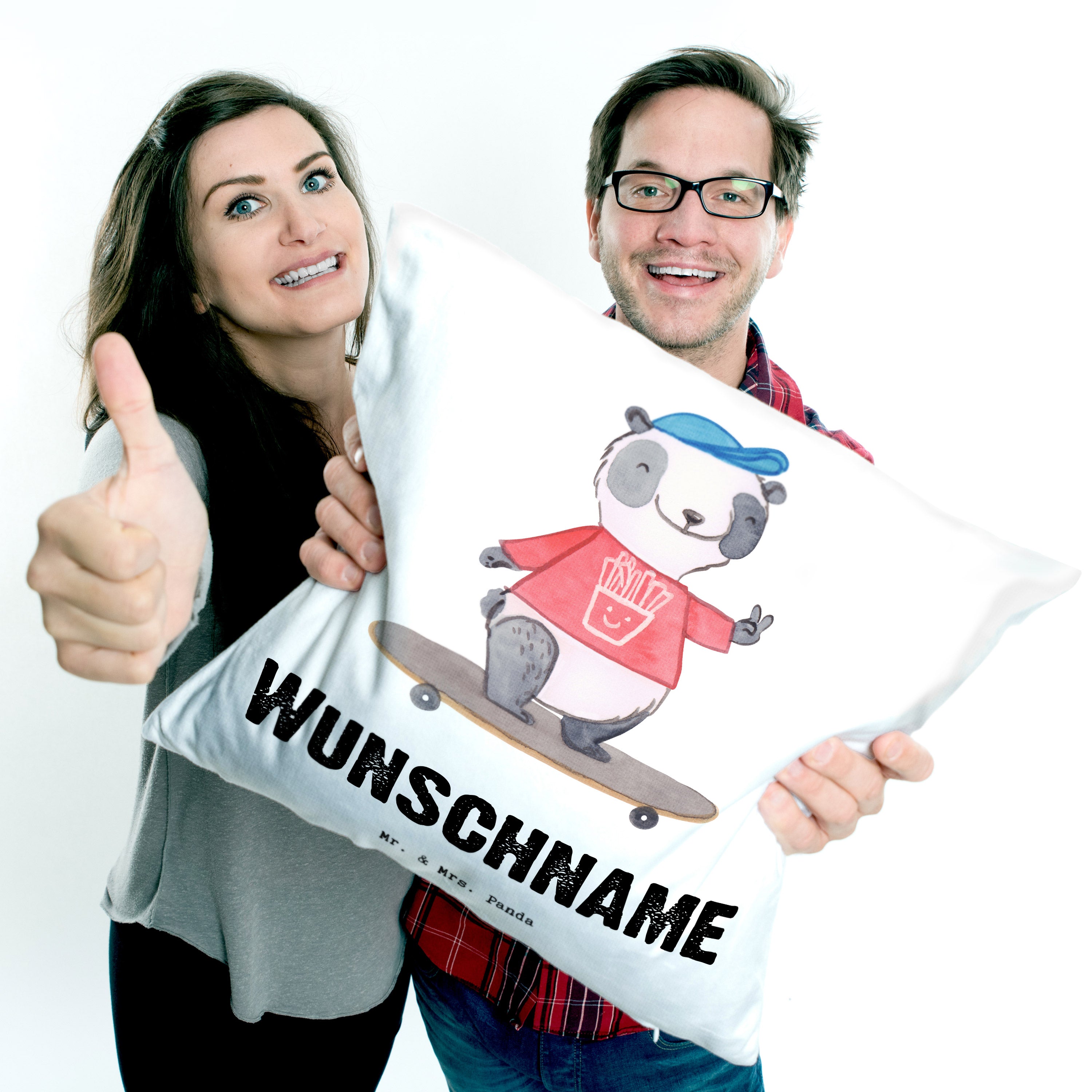 Personalisiertes Kissen Panda Longboard fahren Tage