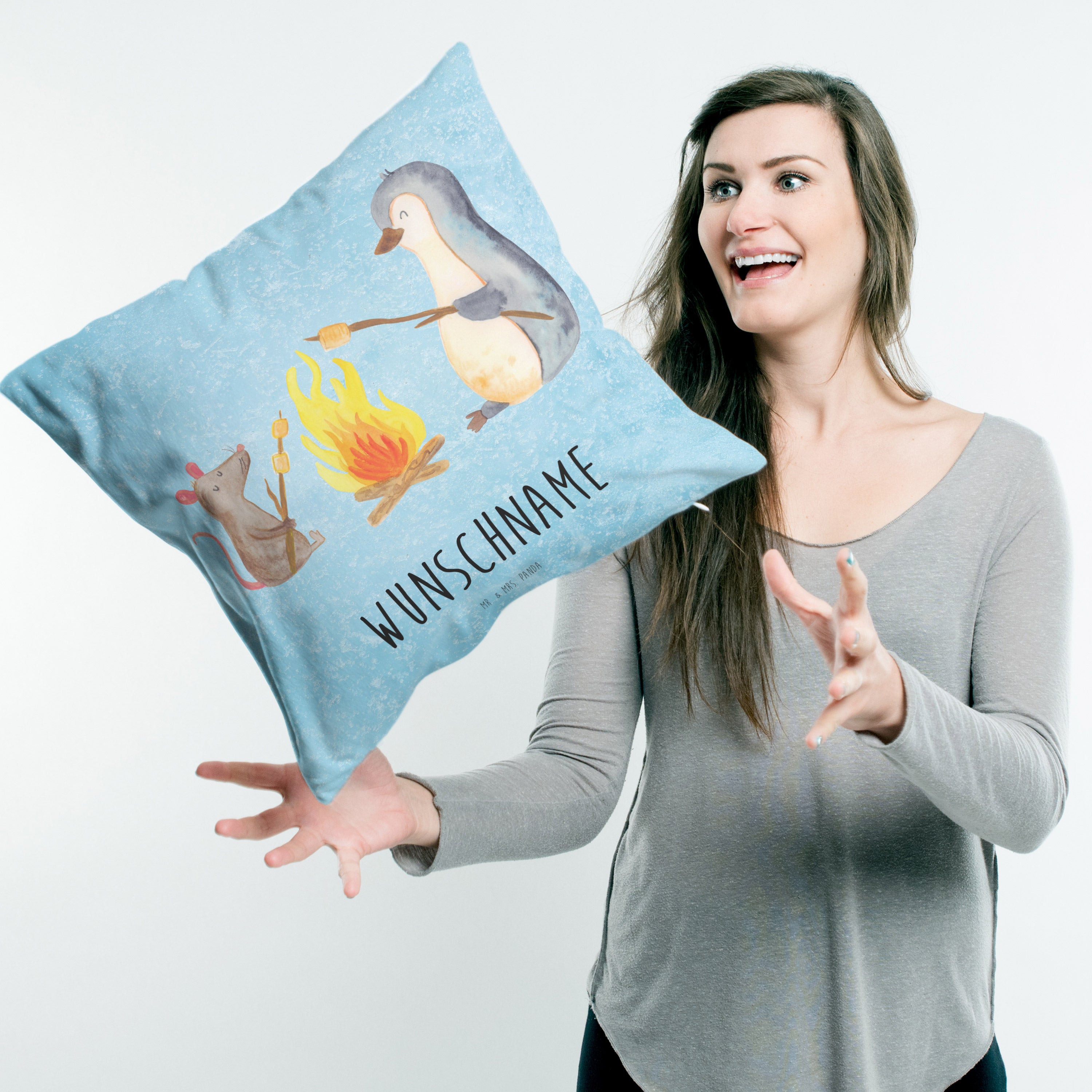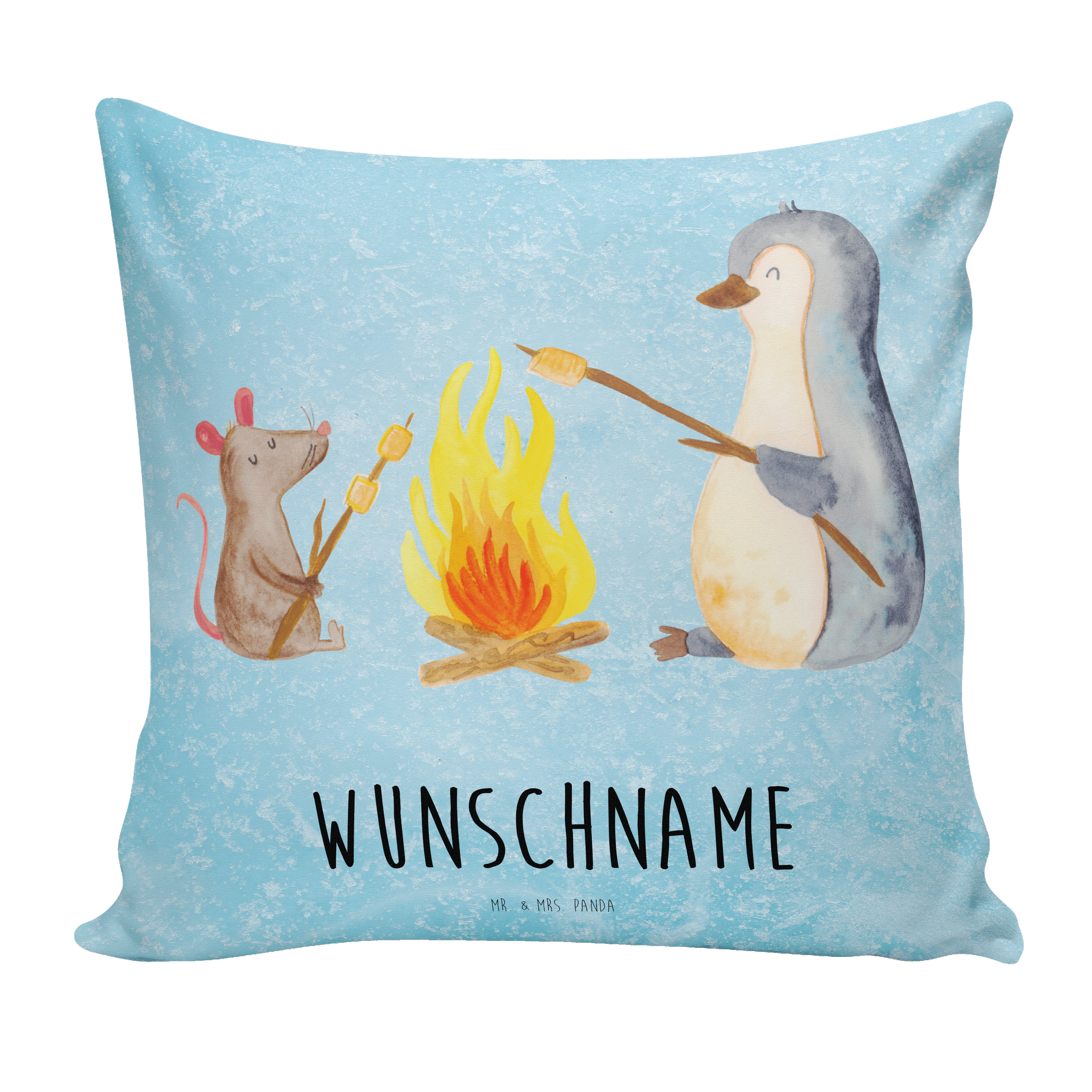 Personalisiertes Kissen Pinguin Lagerfeuer