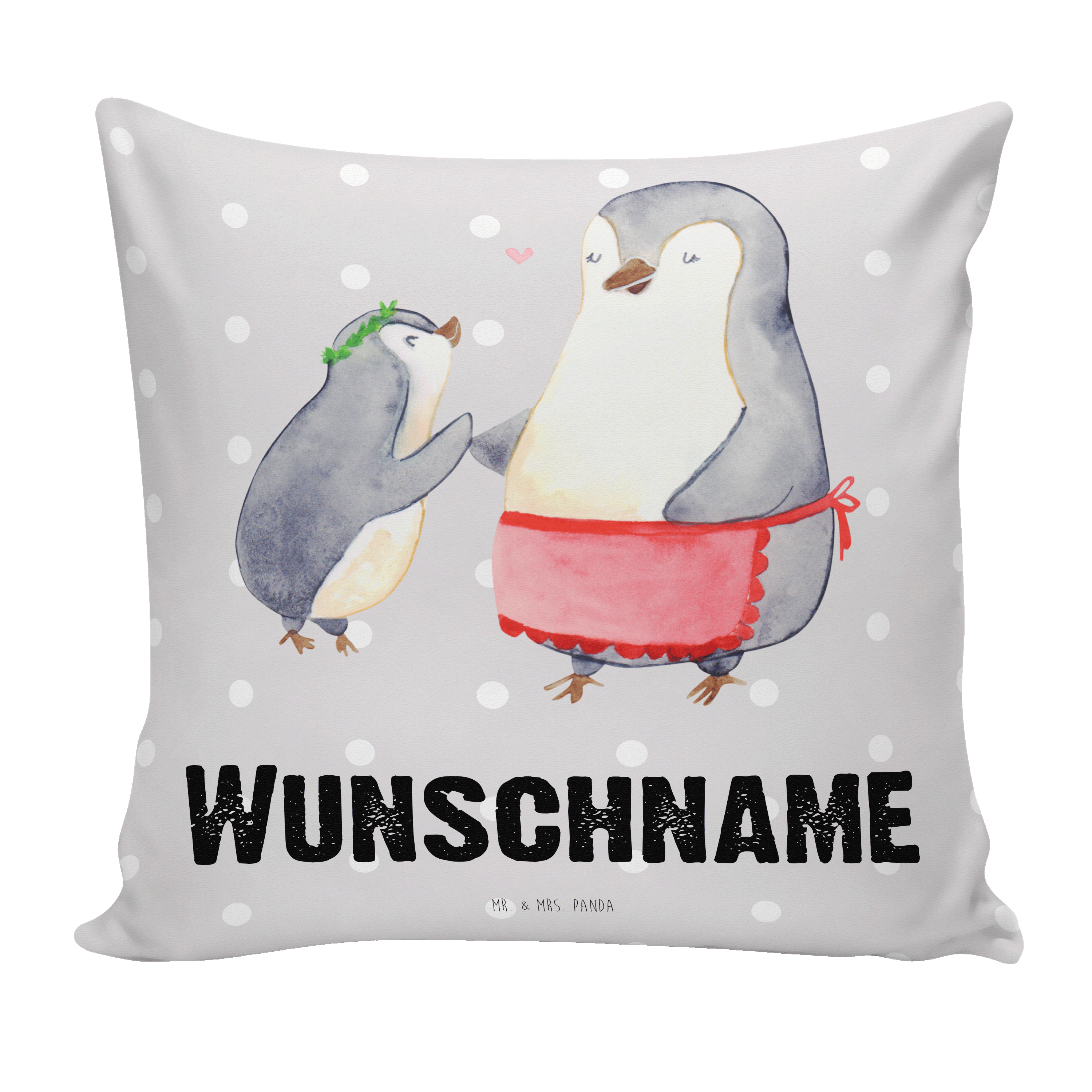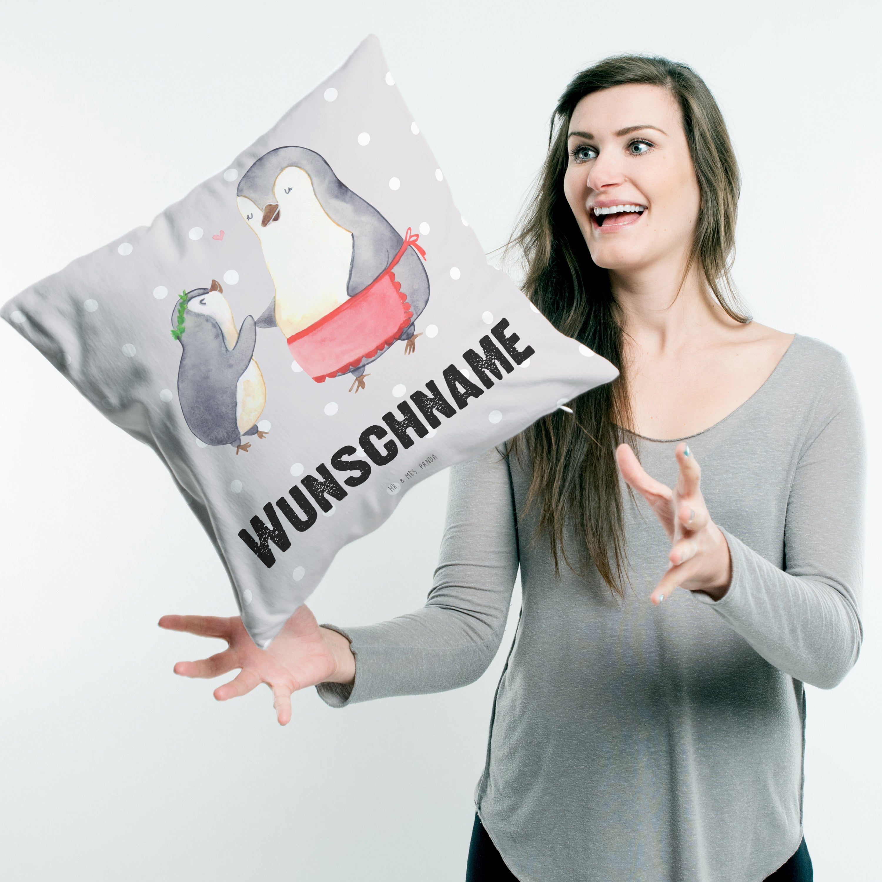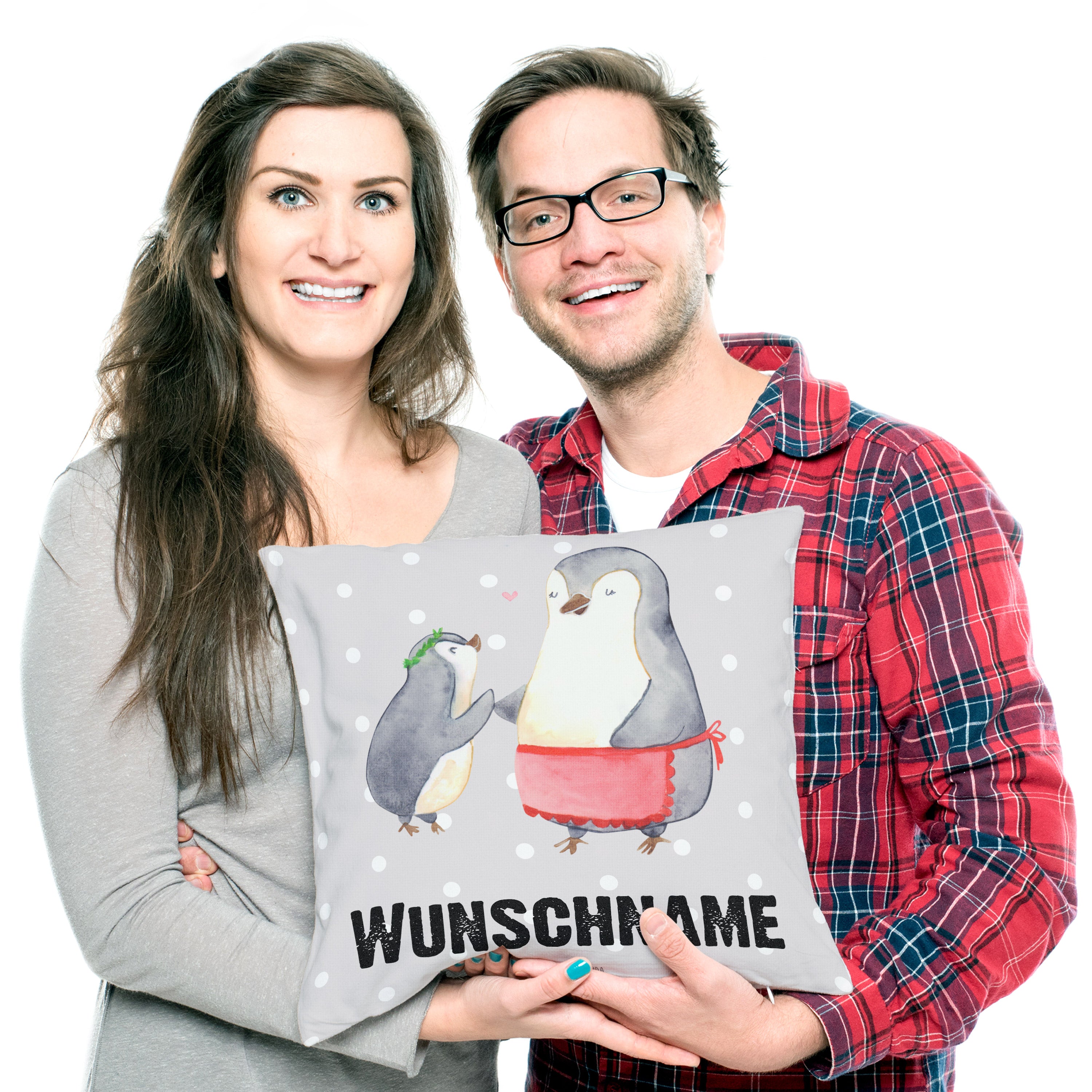 Personalisiertes Kissen Pinguin mit Kind - Grau Pastell