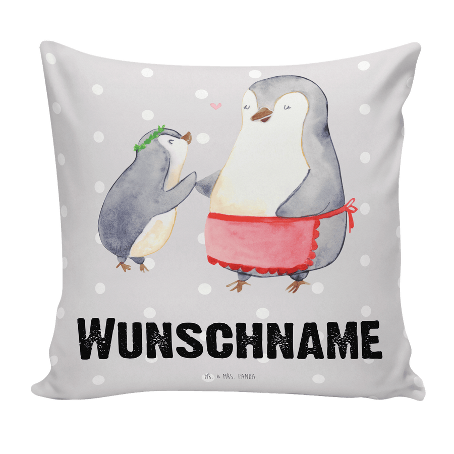 Personalisiertes Kissen Pinguin mit Kind Kissen, personalisiert, Name, Wunschname, bedrucken, Kopfkissen, Familie, Vatertag, Muttertag, Bruder, Schwester, Mama, Papa, Oma, Opa, Geschenk, Mami, Mutti, Mutter, Geburststag