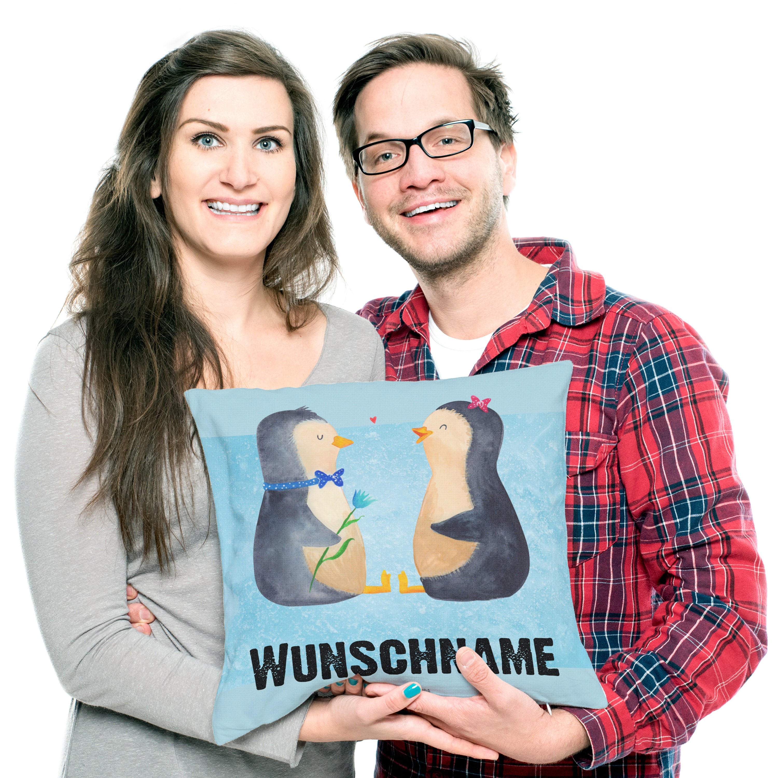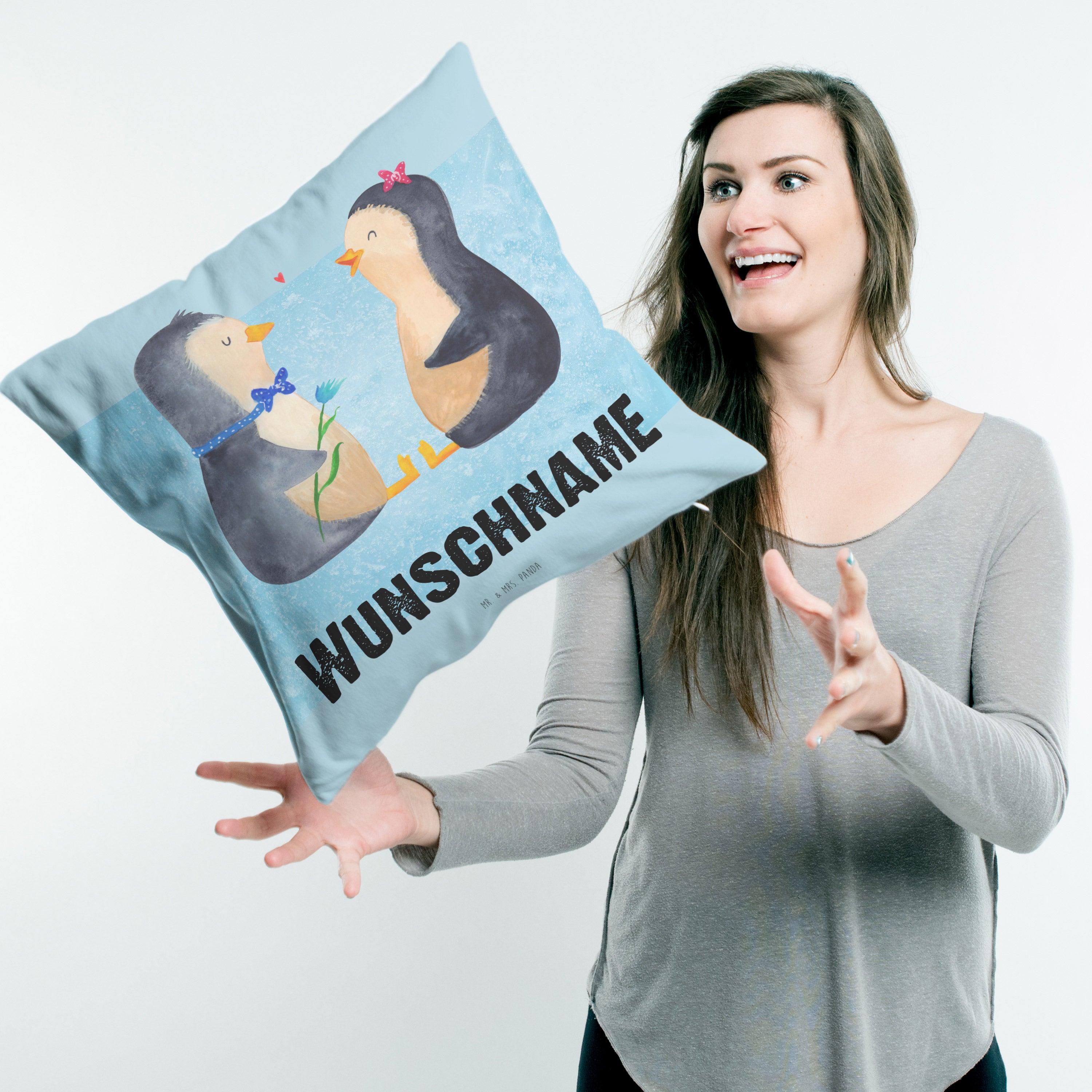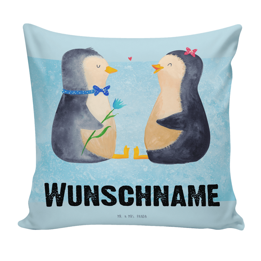 Personalisiertes Kissen Pinguin Pärchen Kissen, personalisiert, Name, Wunschname, bedrucken, Kopfkissen, Pinguin, Pinguine, Liebe, Liebespaar, Liebesbeweis, Liebesgeschenk, Verlobung, Jahrestag, Hochzeitstag, Hochzeit, Hochzeitsgeschenk, große Liebe, Traumpaar