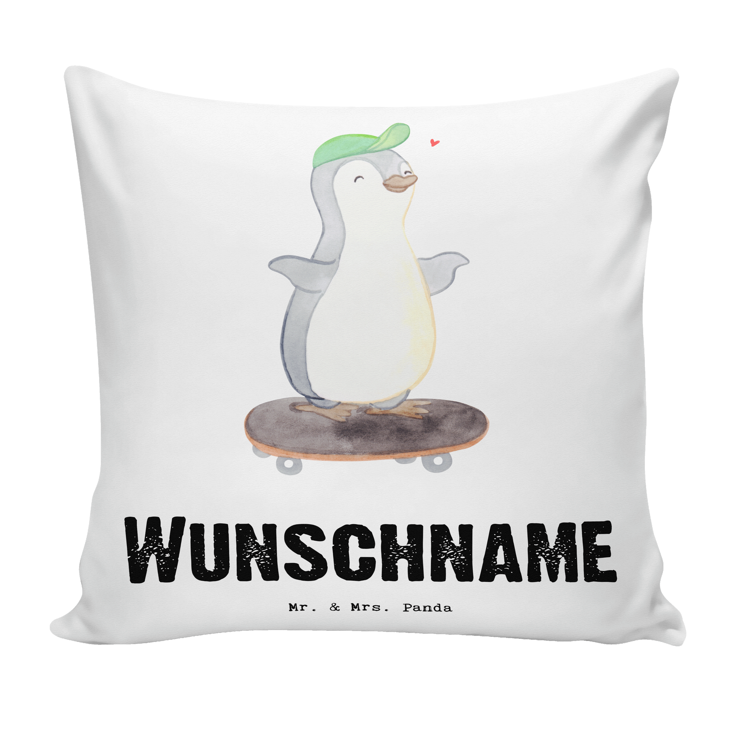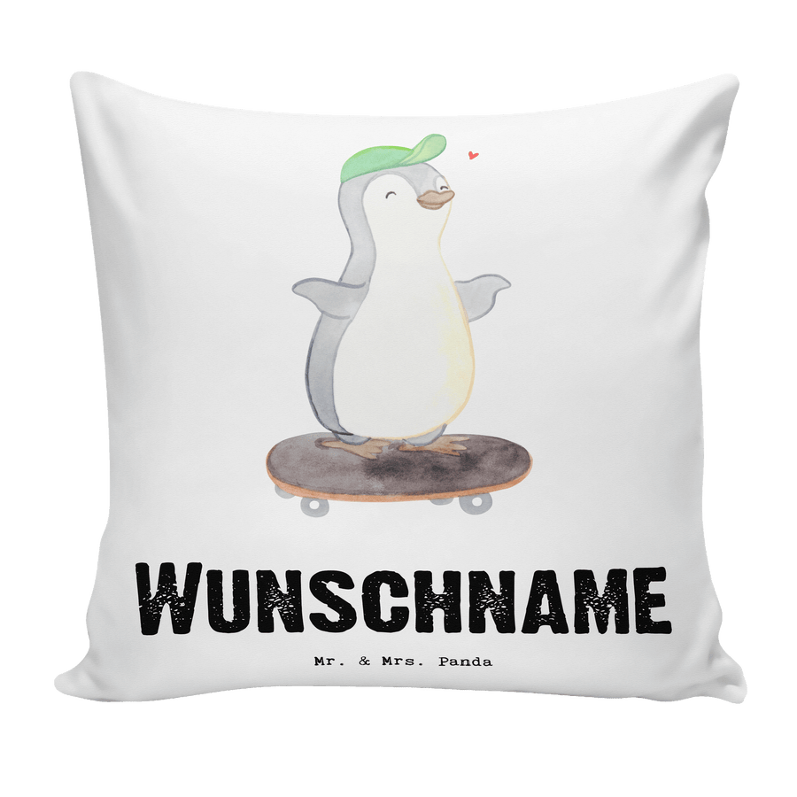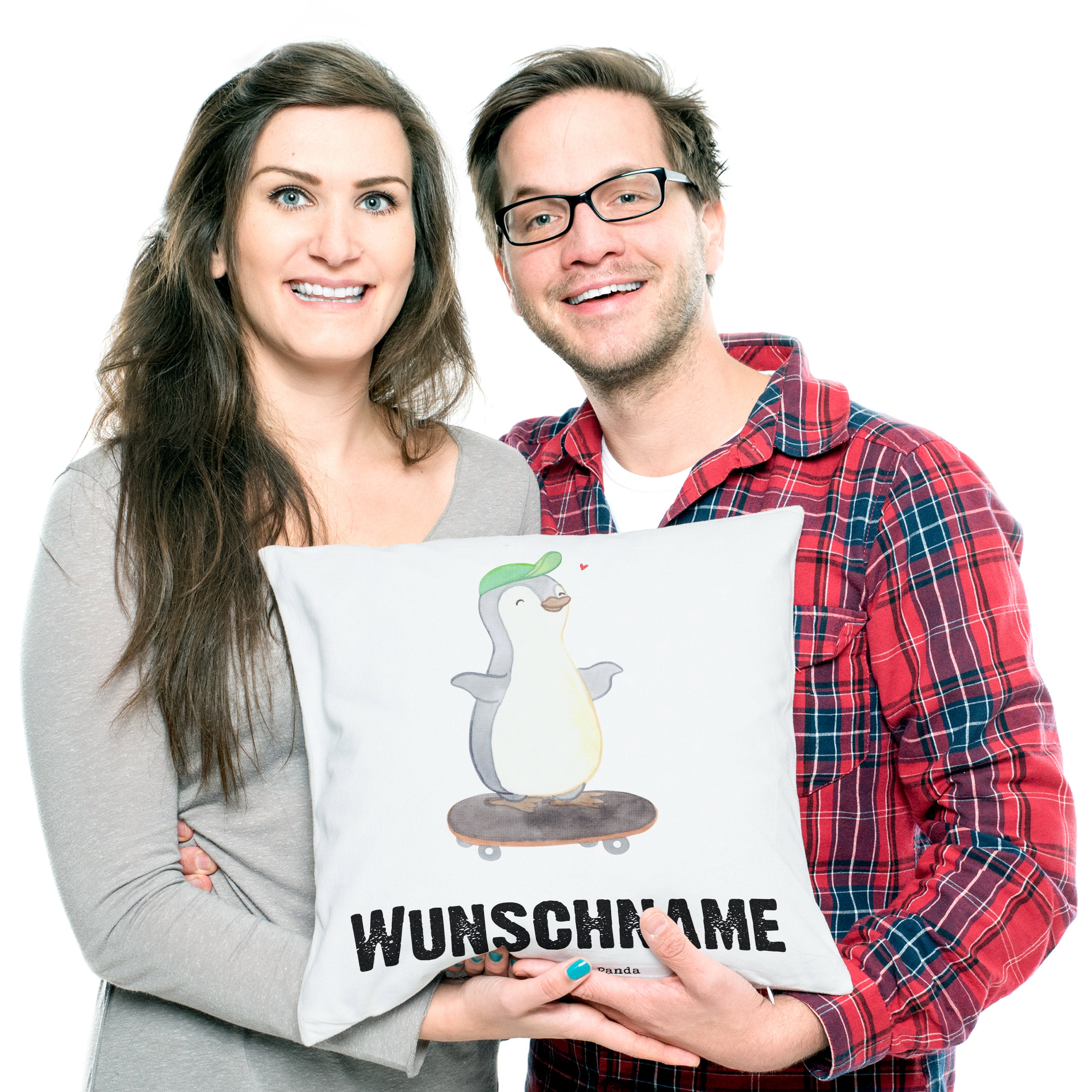 Personalisiertes Kissen Pinguin Skateboarden Tage Kissen, personalisiert, Name, Wunschname, bedrucken, Kopfkissen, Geschenk, Sport, Sportart, Hobby, Schenken, Danke, Dankeschön, Auszeichnung, Gewinn, Sportler, Skateboarden, Skateboard fahren, Skaten, Skateboard, Skateplatz