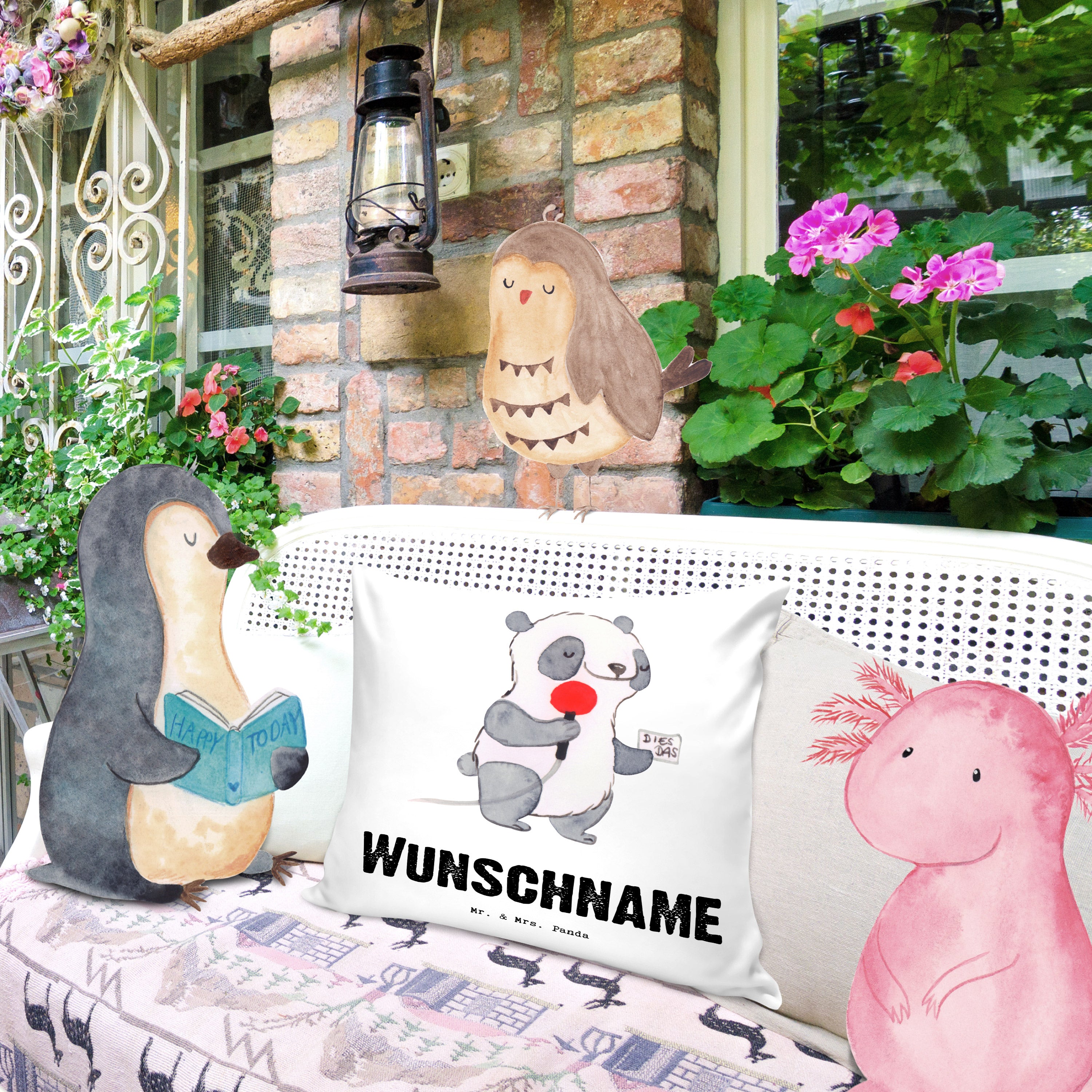 Ein wunderschönes personalisiertes kuscheliges Kissen von Mr. & Mrs. Panda mit wunderbar weicher entnehmbarer Füllung - Die Kissenhülle bzw. der Kissenbezug wurde liebevoll von uns bedruckt und mit einer superweichen Kissenfüllung versehen. Das Kopfkissen hat einen Reißverschluss zum Entnehmen der Füllung. Dein neues Kuschelkissen hat die Größe von 40x40 cm und ist auch perfekt als Sofakissen oder Dekokissen geeignet - das Kissen ist ebenfalls in der Größe 80x80 erhältlich. Bitte beachte, dass personalisierte Artikel vom Umtausch ausgeschlossen sind.