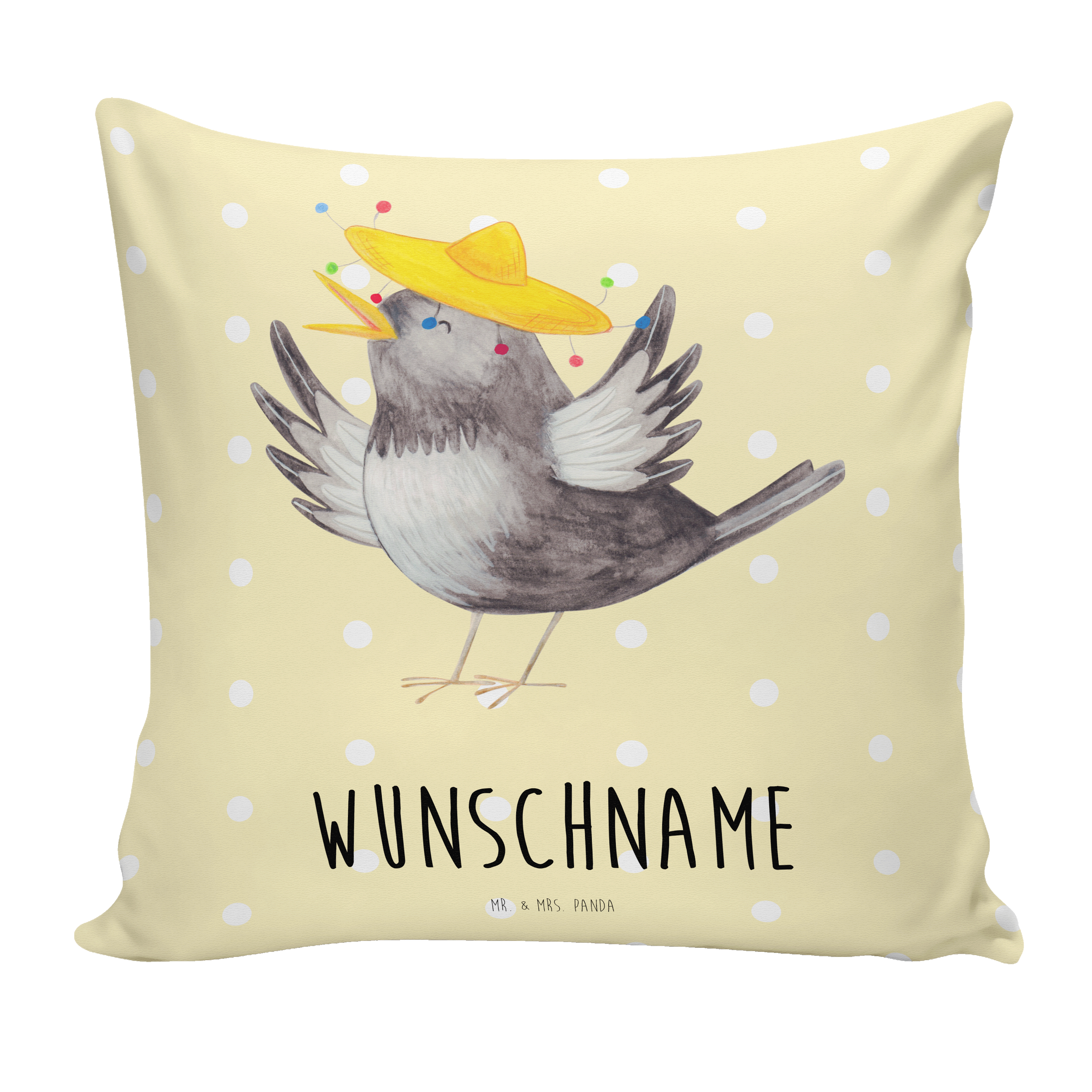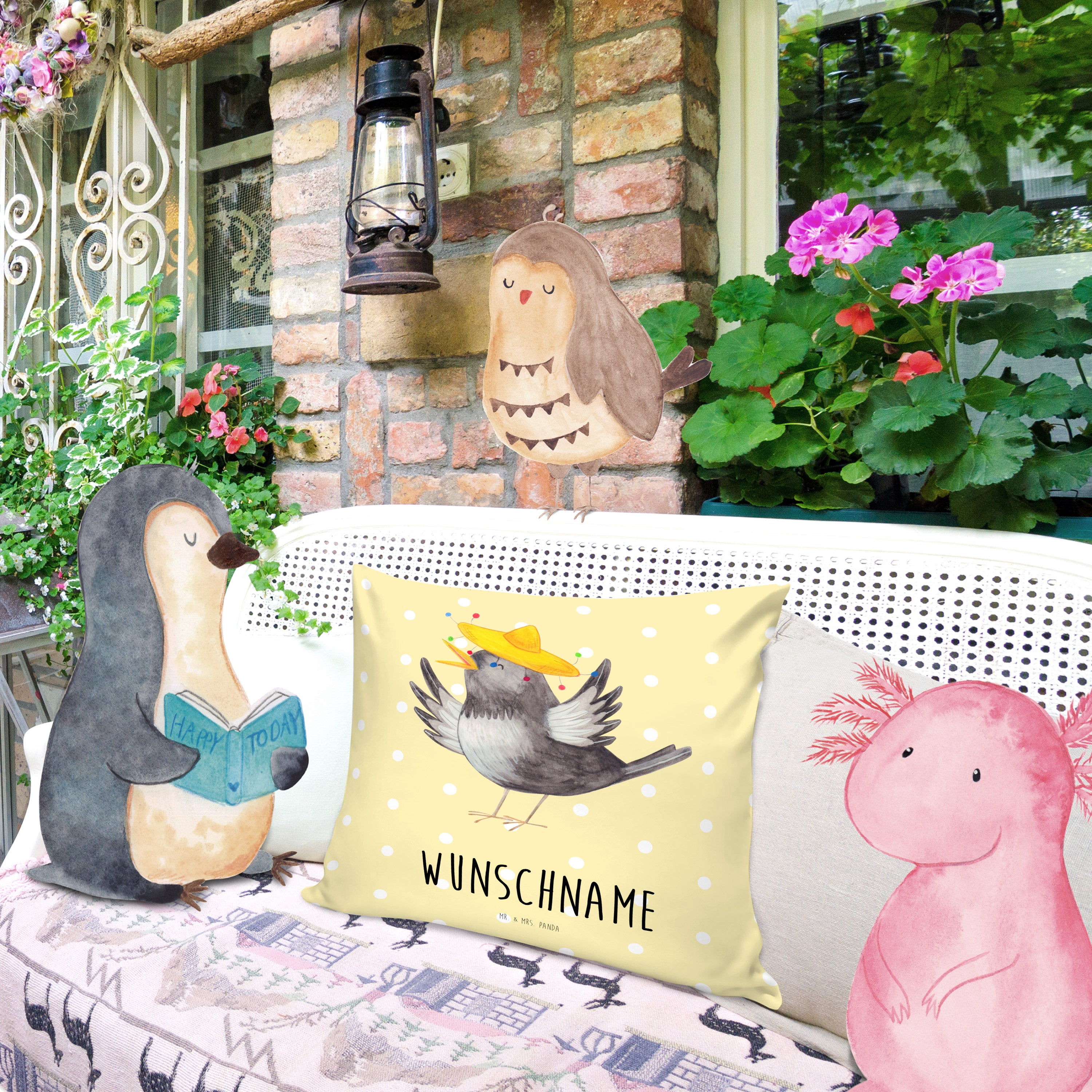 Personalisiertes Kissen Rabe mit Sombrero Kissen, personalisiert, Name, Wunschname, bedrucken, Kopfkissen, Tiermotive, Gute Laune, lustige Sprüche, Tiere, Rabe, Vogel, Vögel, Spruch positiv, fröhlich sein, glücklich sein, Glück Spruch, froh, Elster, Motivation