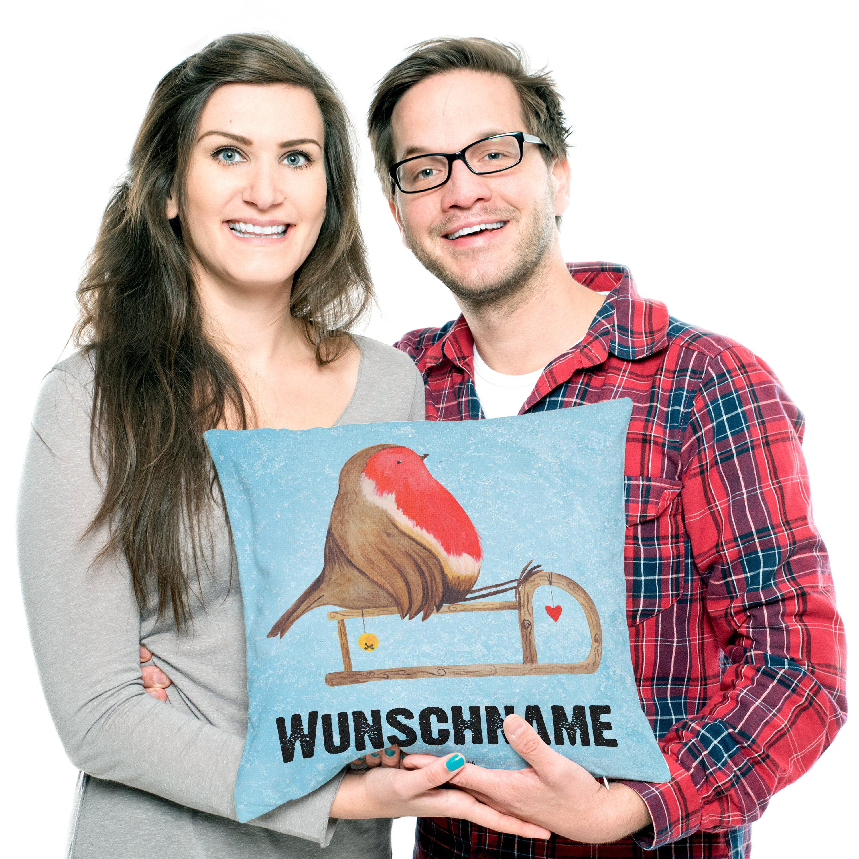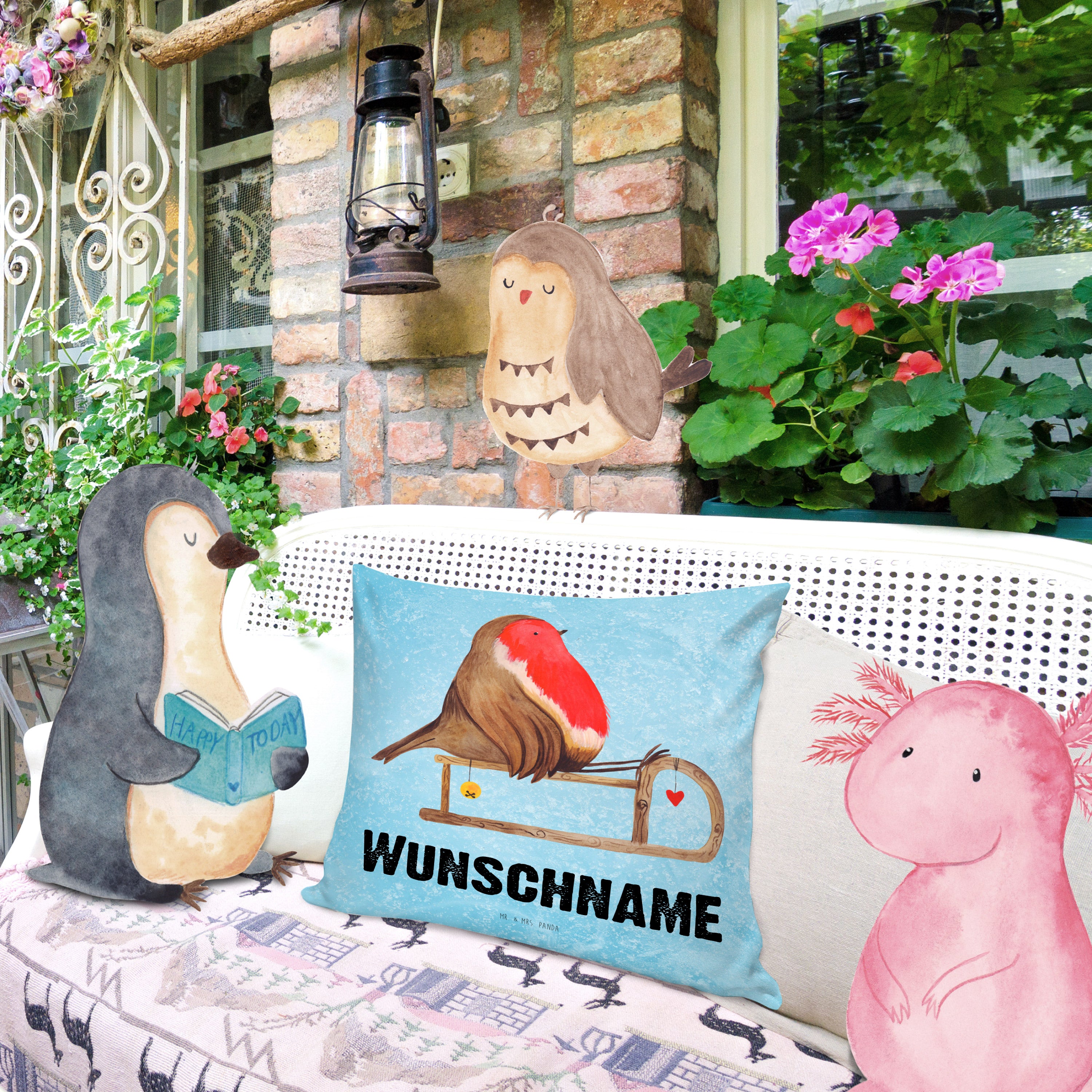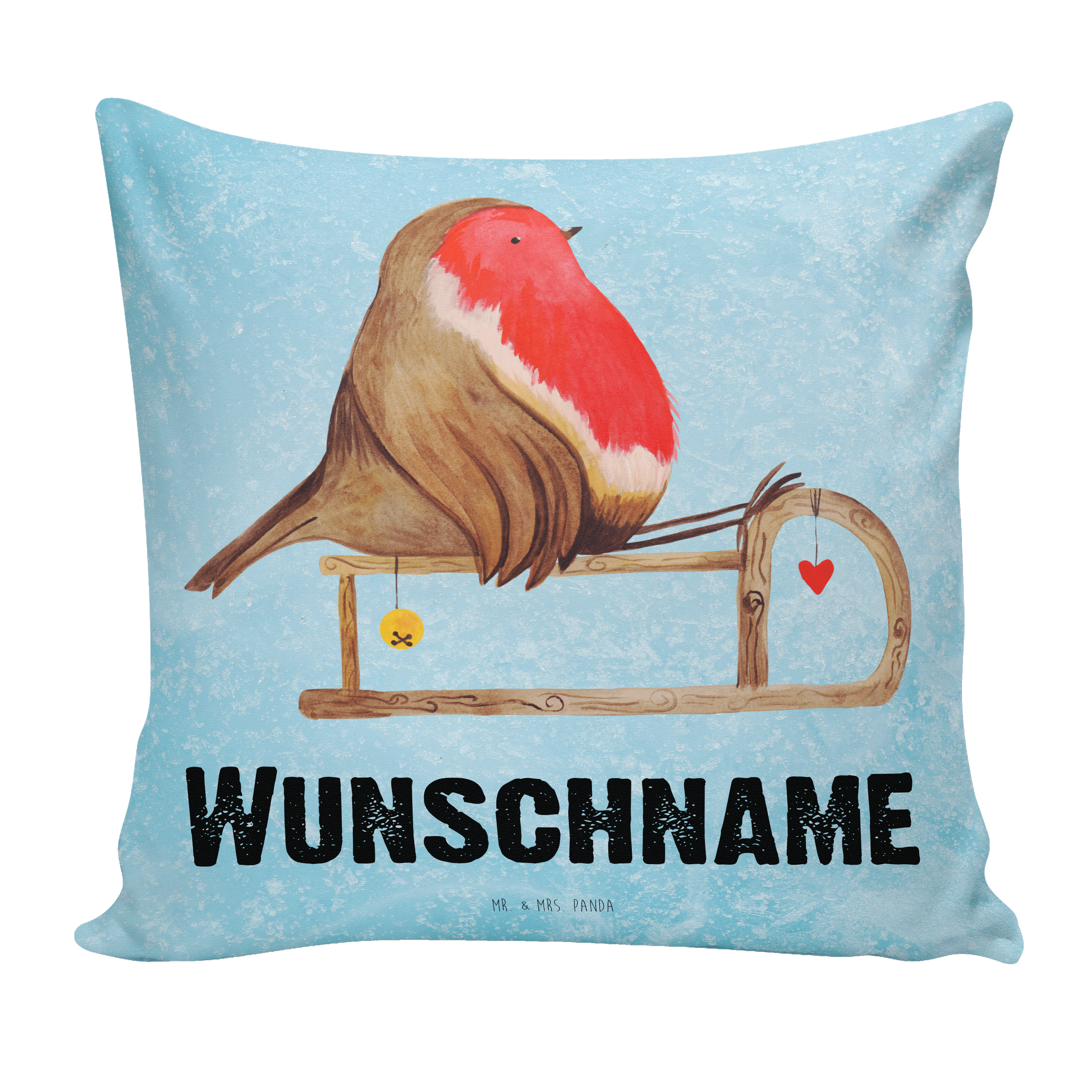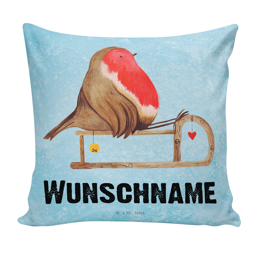 Personalisiertes Kissen Rotkehlchen Schlitten
