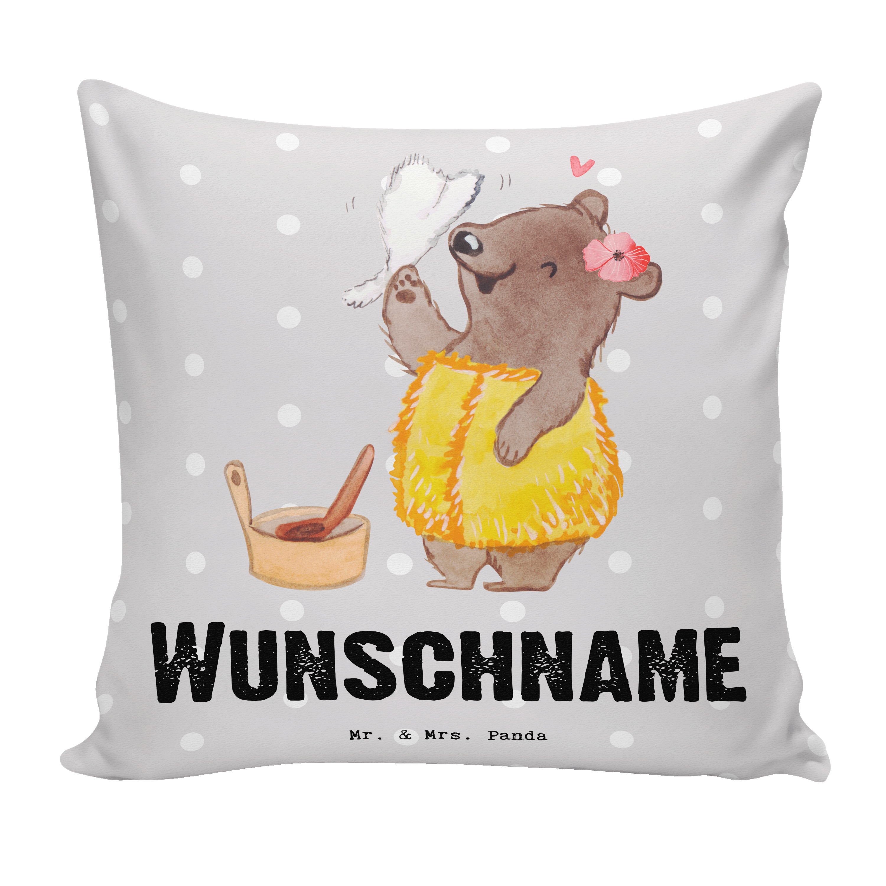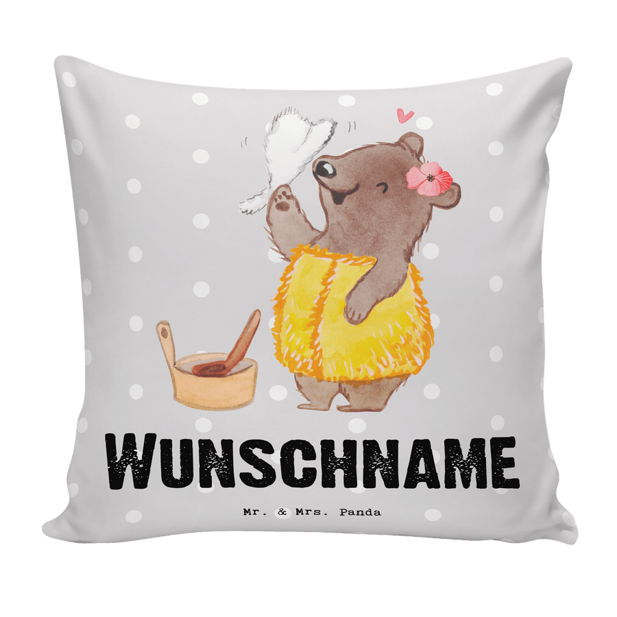 Personalisiertes Kissen Saunameisterin mit Herz Kissen, personalisiert, Name, Wunschname, bedrucken, Kopfkissen, Beruf, Ausbildung, Jubiläum, Abschied, Rente, Kollege, Kollegin, Geschenk, Schenken, Arbeitskollege, Mitarbeiter, Firma, Danke, Dankeschön