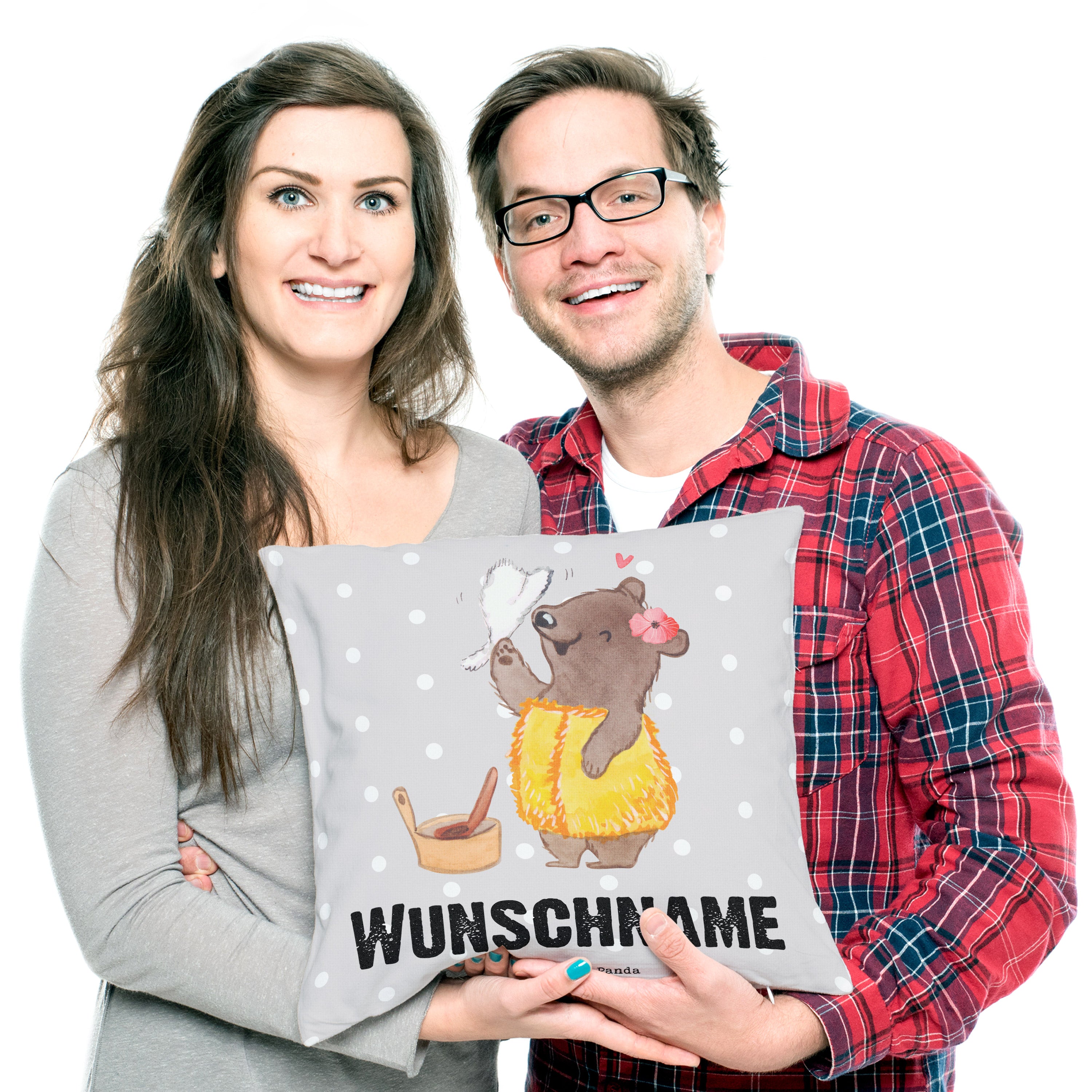 Ein wunderschönes personalisiertes kuscheliges Kissen von Mr. & Mrs. Panda mit wunderbar weicher entnehmbarer Füllung - Die Kissenhülle bzw. der Kissenbezug wurde liebevoll von uns bedruckt und mit einer superweichen Kissenfüllung versehen. Das Kopfkissen hat einen Reißverschluss zum Entnehmen der Füllung. Dein neues Kuschelkissen hat die Größe von 40x40 cm und ist auch perfekt als Sofakissen oder Dekokissen geeignet - das Kissen ist ebenfalls in der Größe 80x80 erhältlich. Bitte beachte, dass personalisierte Artikel vom Umtausch ausgeschlossen sind.