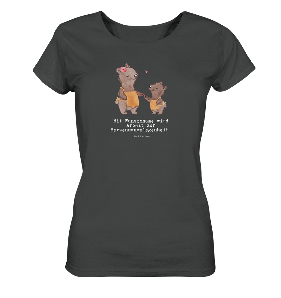 Personalisiertes Shirt Damen Arbeitserzieherin mit Herz - Größe S - Anthrazit