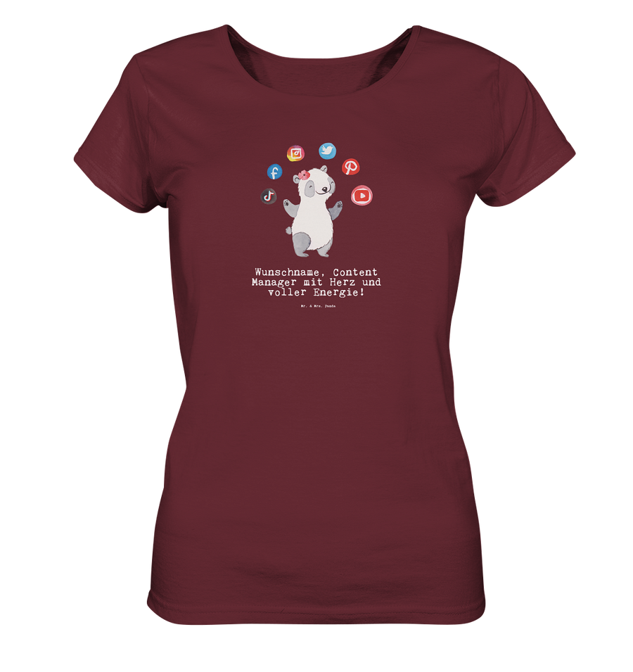 Personalisiertes Shirt Damen Content Manager mit Herz - Größe S - Burgundy