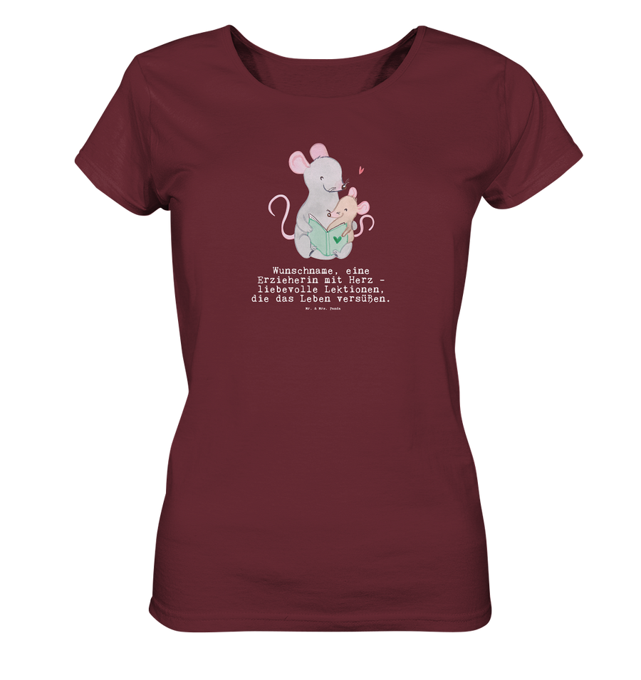 Personalisiertes Shirt Damen Erzieherin mit Herz - Größe S - Burgundy