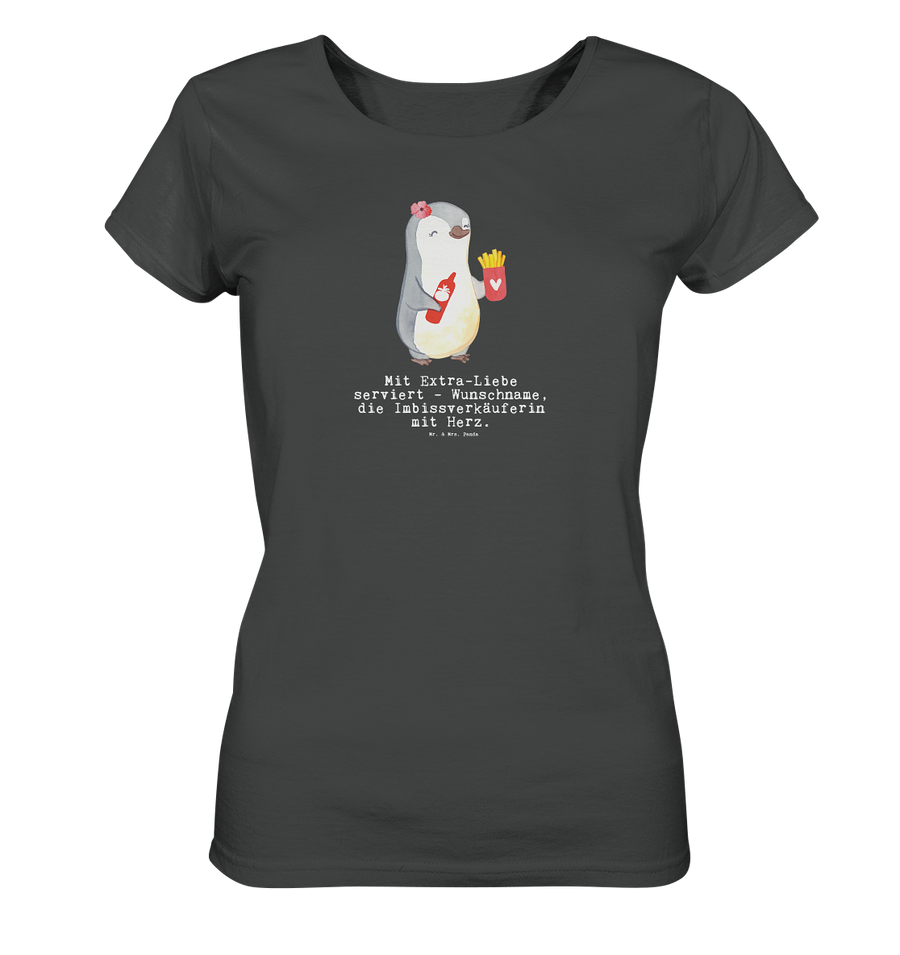 Personalisiertes Shirt Damen Imbissverkäuferin mit Herz - Größe S - Anthrazit