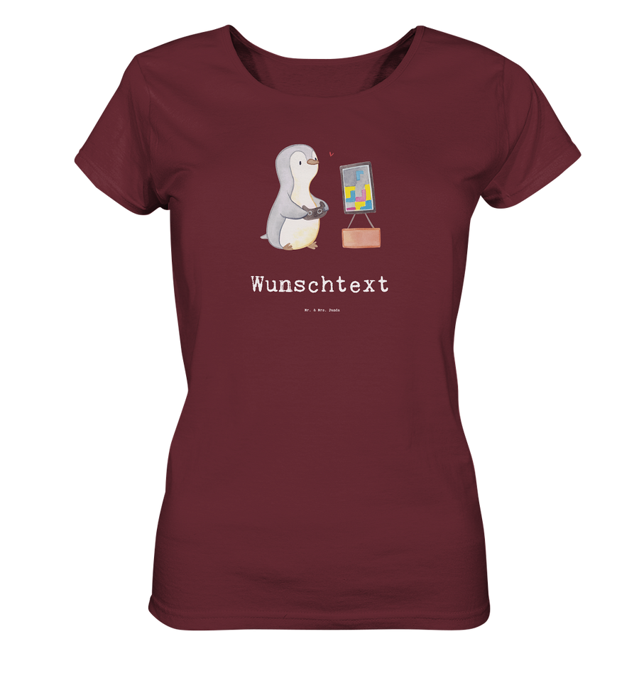 Personalisiertes Shirt Damen Pinguin Zocken Medizin - Größe S - Burgundy