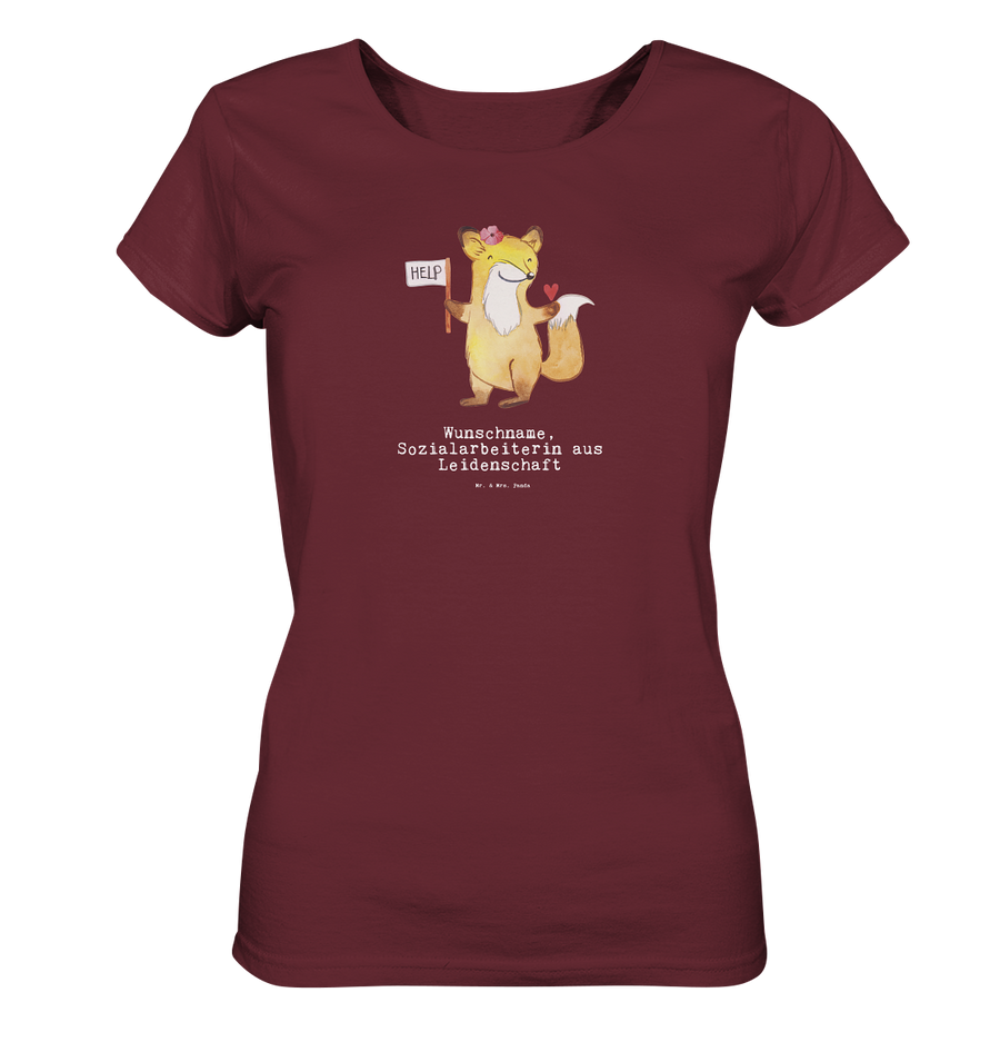 Personalisiertes Shirt Damen Sozialarbeiterin aus Leidenschaft - Größe S - Burgundy