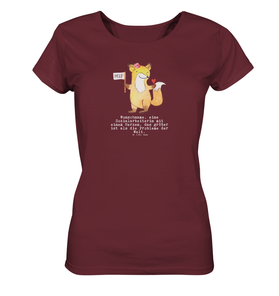 Personalisiertes Shirt Damen Sozialarbeiterin mit Herz - Größe S - Burgundy