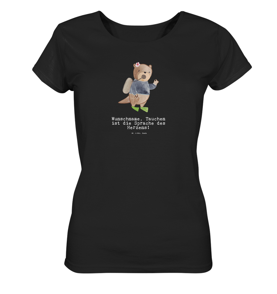 Personalisiertes Shirt Damen Taucherin mit Herz - Größe S - Schwarz
