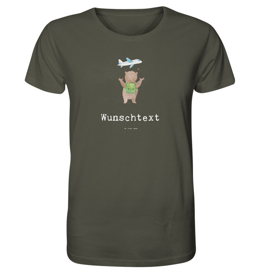 Personalisiertes Shirt Herren Bär Reisen Medizin - Größe S - Khaki