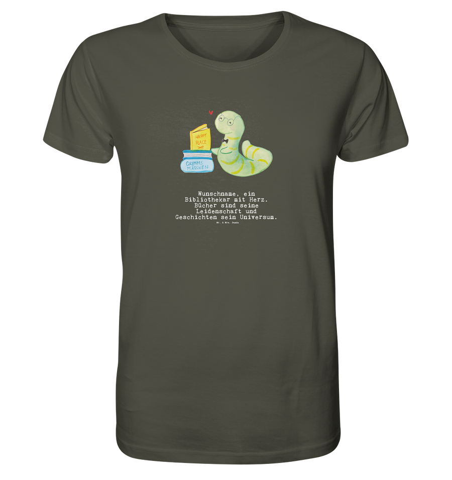 Personalisiertes Shirt Herren Bibliothekar mit Herz - Größe S - Khaki