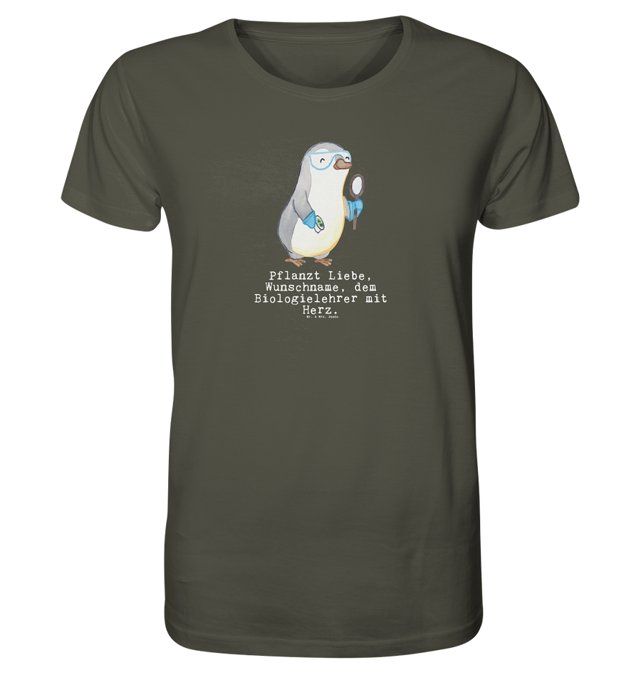 Personalisiertes Shirt Herren Biologielehrer mit Herz - Größe S - Khaki