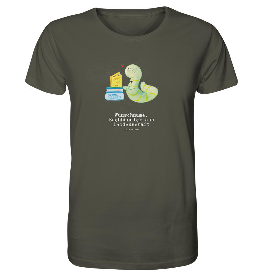 Personalisiertes Shirt Herren Buchhändler aus Leidenschaft - Größe S - Khaki