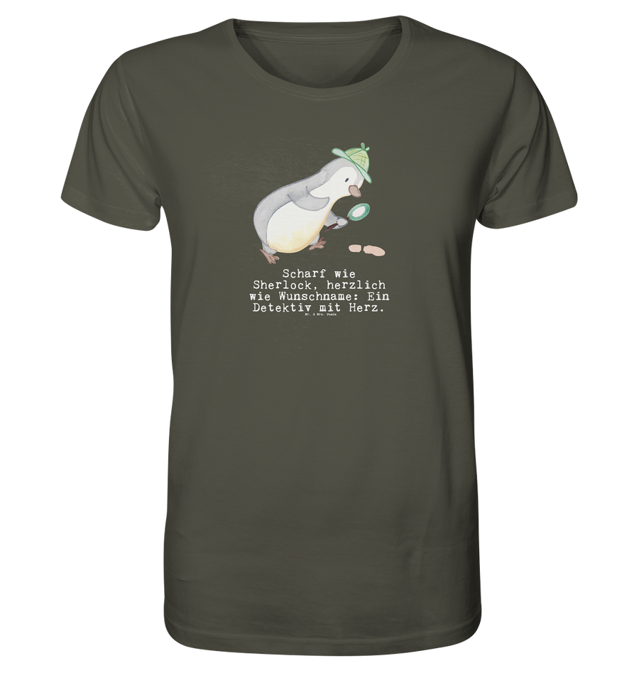 Personalisiertes Shirt Herren Detektiv mit Herz - Größe S - Khaki