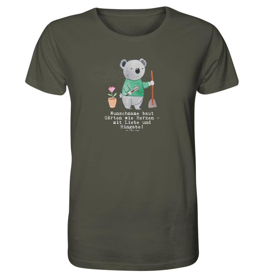 Personalisiertes Shirt Herren Garten- und Landschaftsbauer mit Herz - Größe S - Khaki