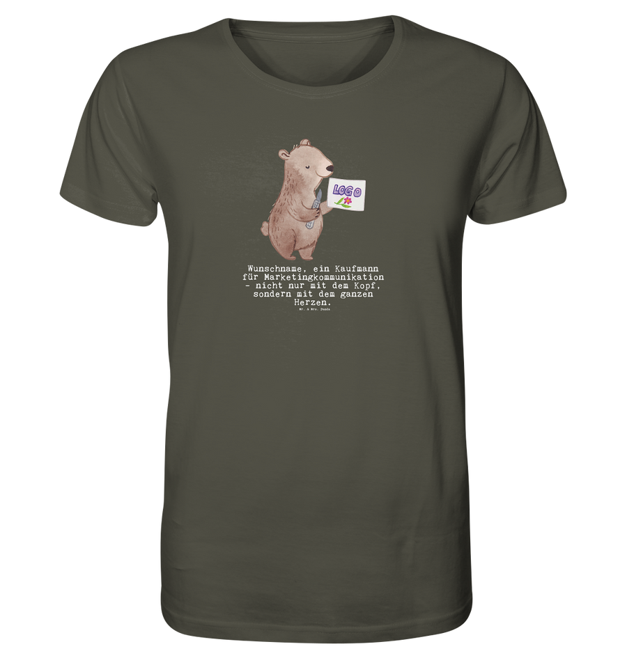 Personalisiertes Shirt Herren Kaufmann für Marketingkommunikation mit Herz - Größe S - Khaki