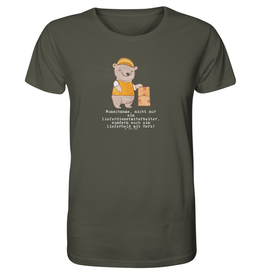 Personalisiertes Shirt Herren Lieferdienstmitarbeiter mit Herz - Größe S - Khaki