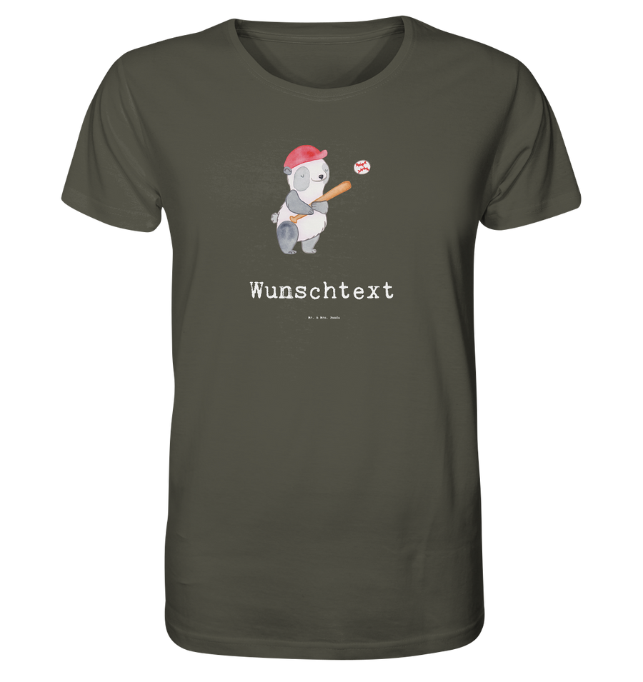 Personalisiertes Shirt Herren Panda Baseball spielen Medizin - Größe S - Khaki