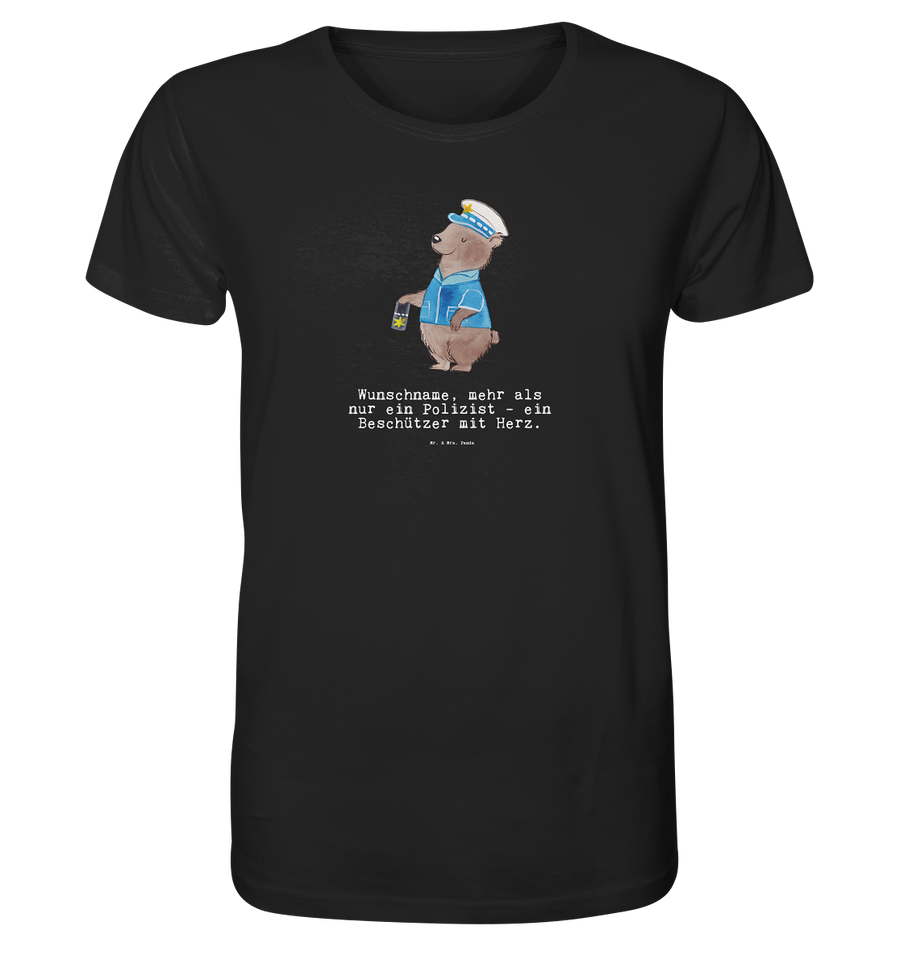 Personalisiertes Shirt Herren Polizist mit Herz - Größe S - Schwarz