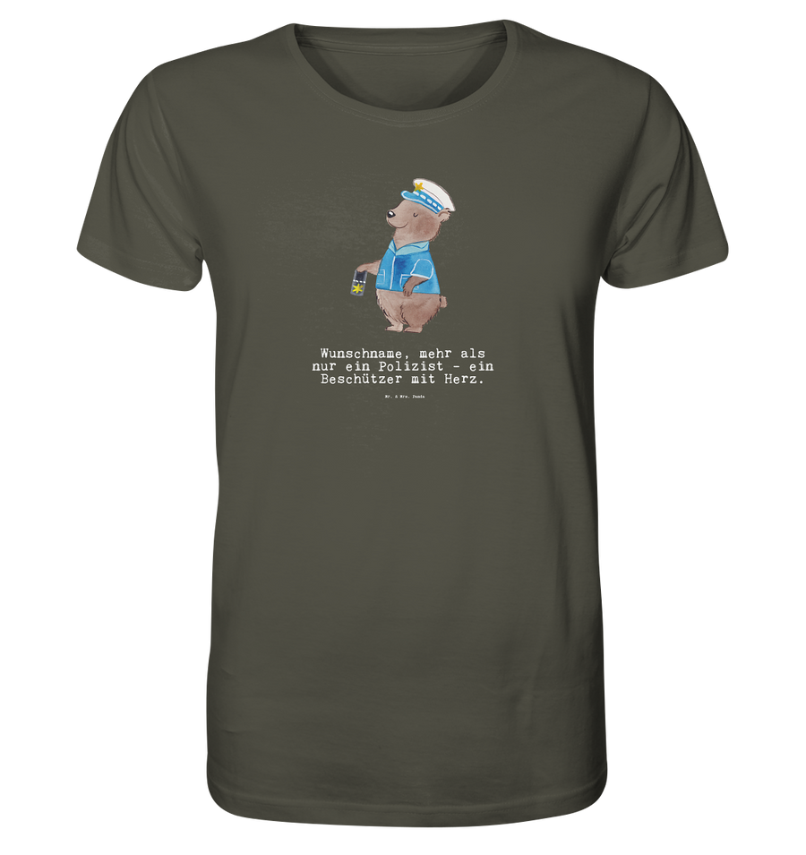 Personalisiertes Shirt Herren Polizist mit Herz - Größe S - Khaki
