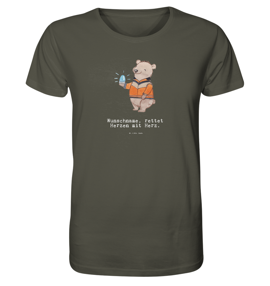 Personalisiertes Shirt Herren Rettungswagenfahrer mit Herz - Größe S - Khaki