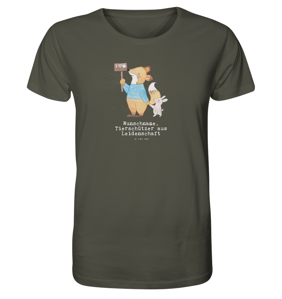 Personalisiertes Shirt Herren Tierschützer aus Leidenschaft - Größe S - Khaki