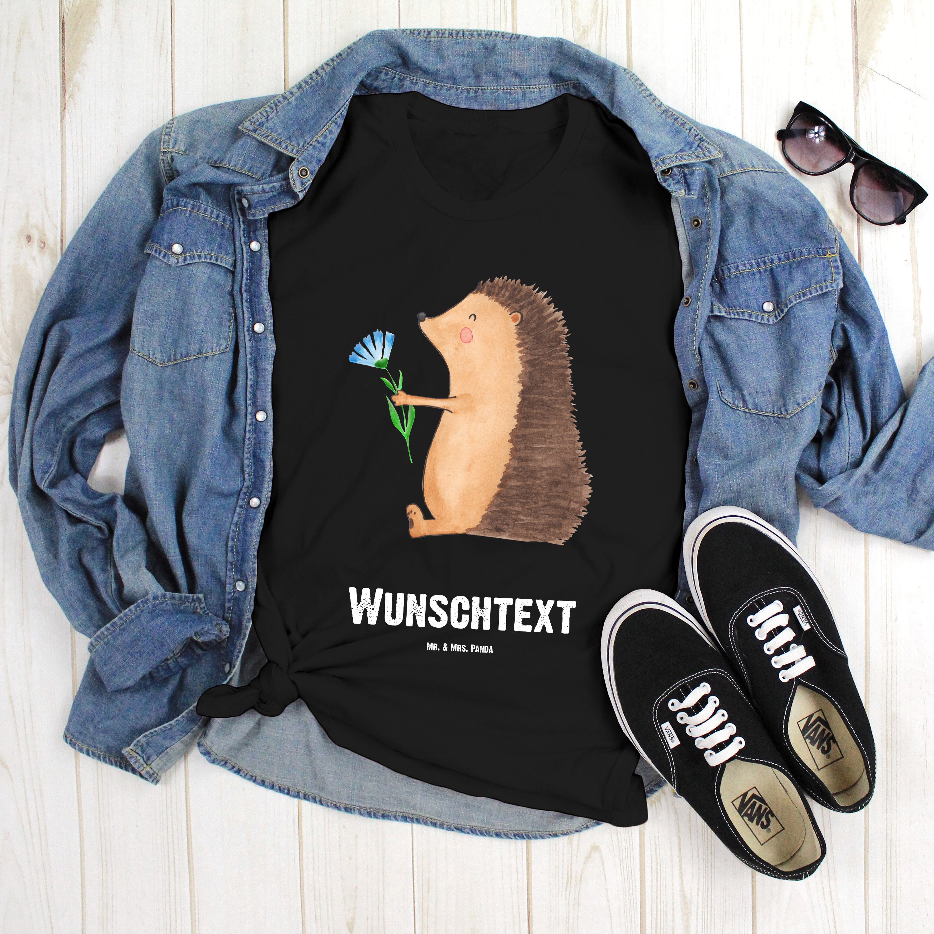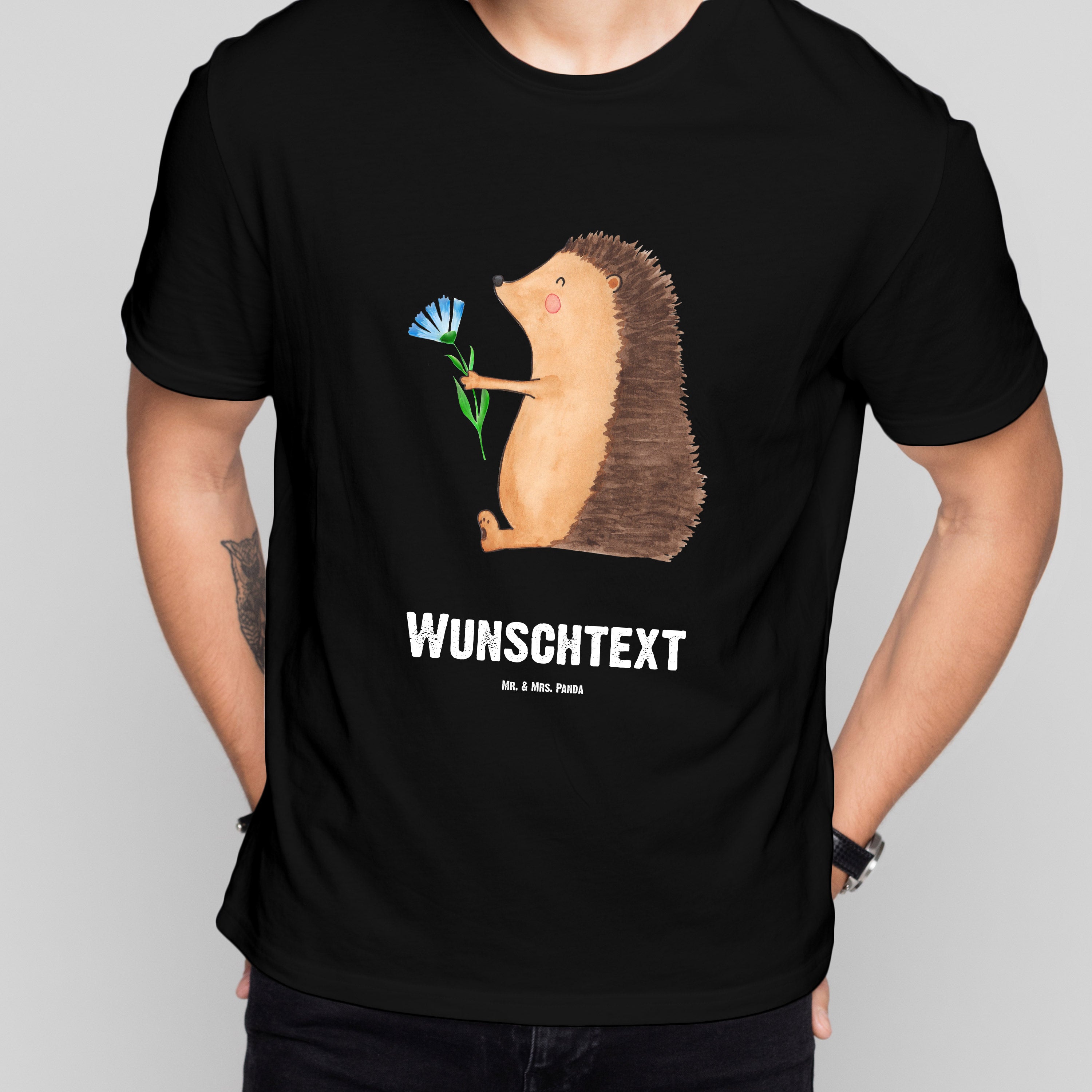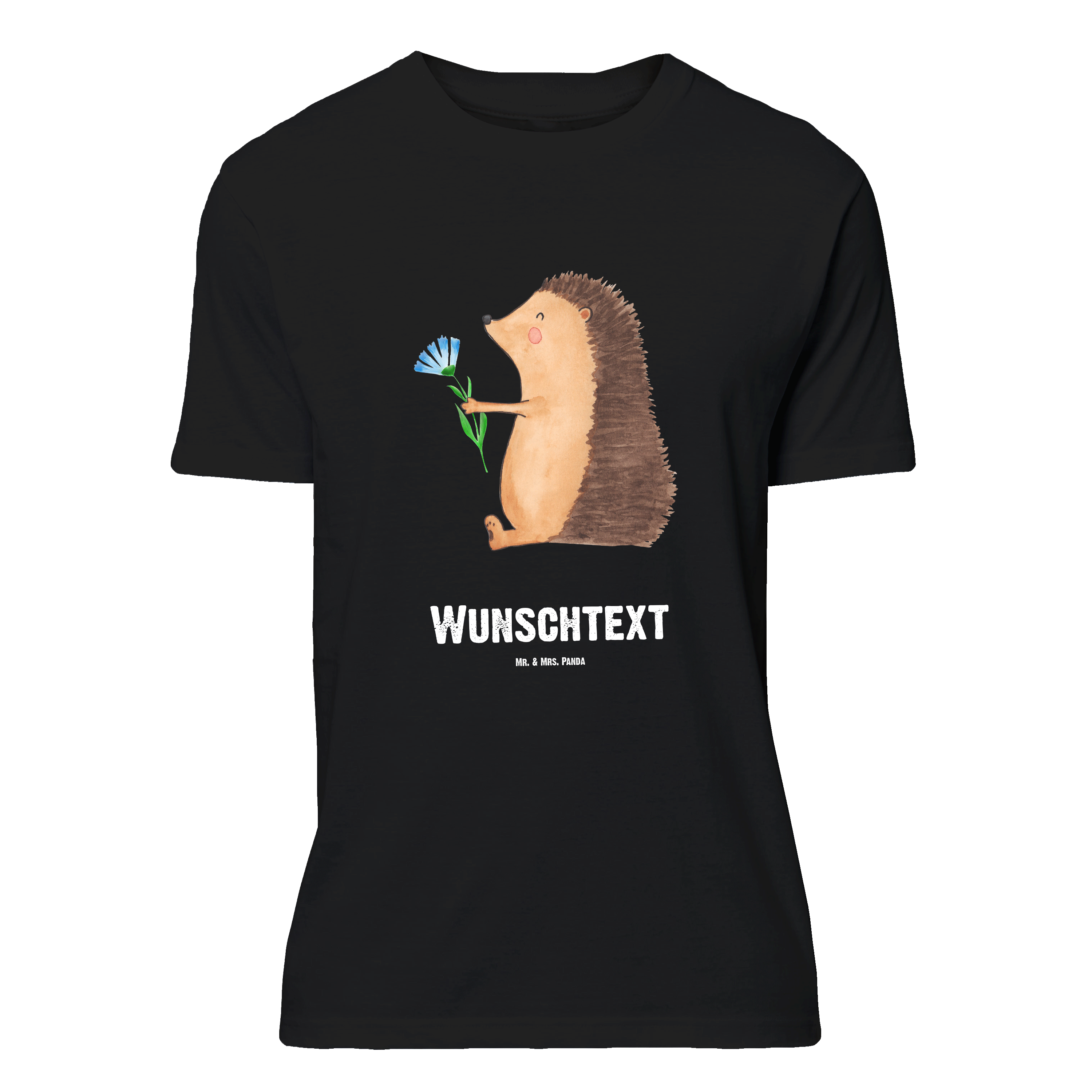 Größe M Personalisiertes T-Shirt Igel mit Blume - Weiß