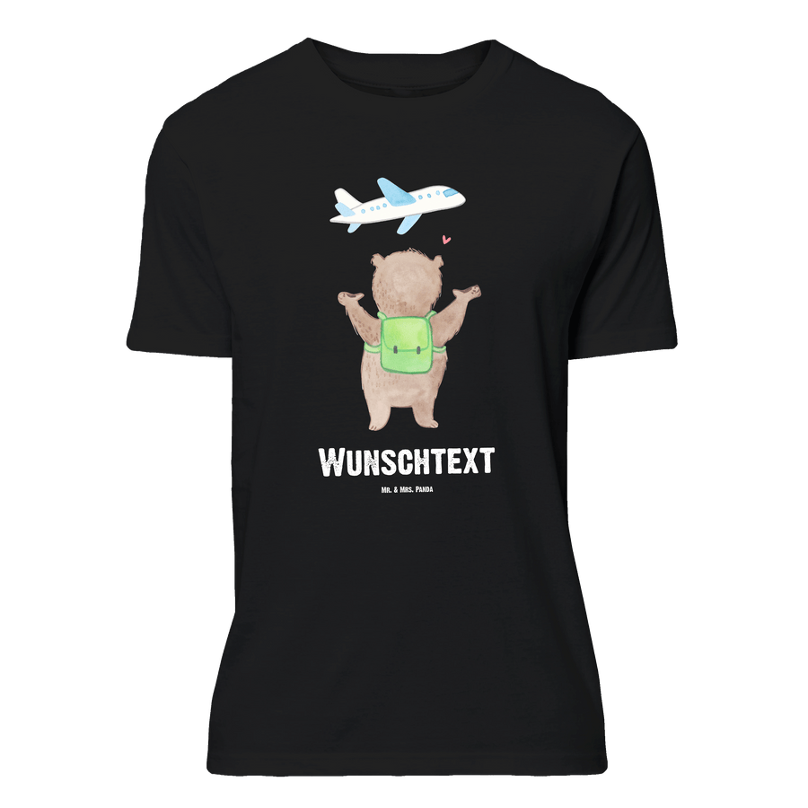 Größe S Personalisiertes T-Shirt Bär Flugzeug - Schwarz