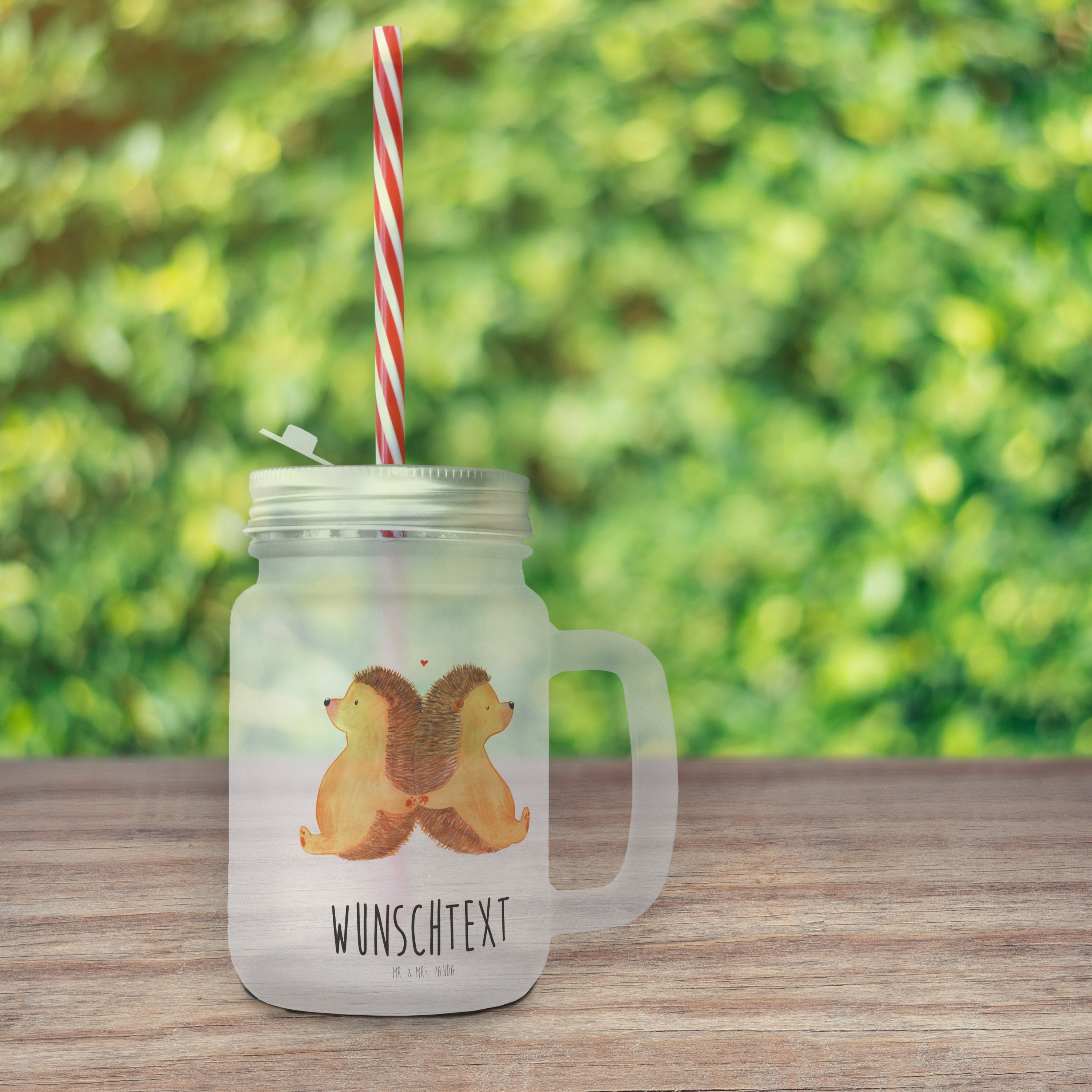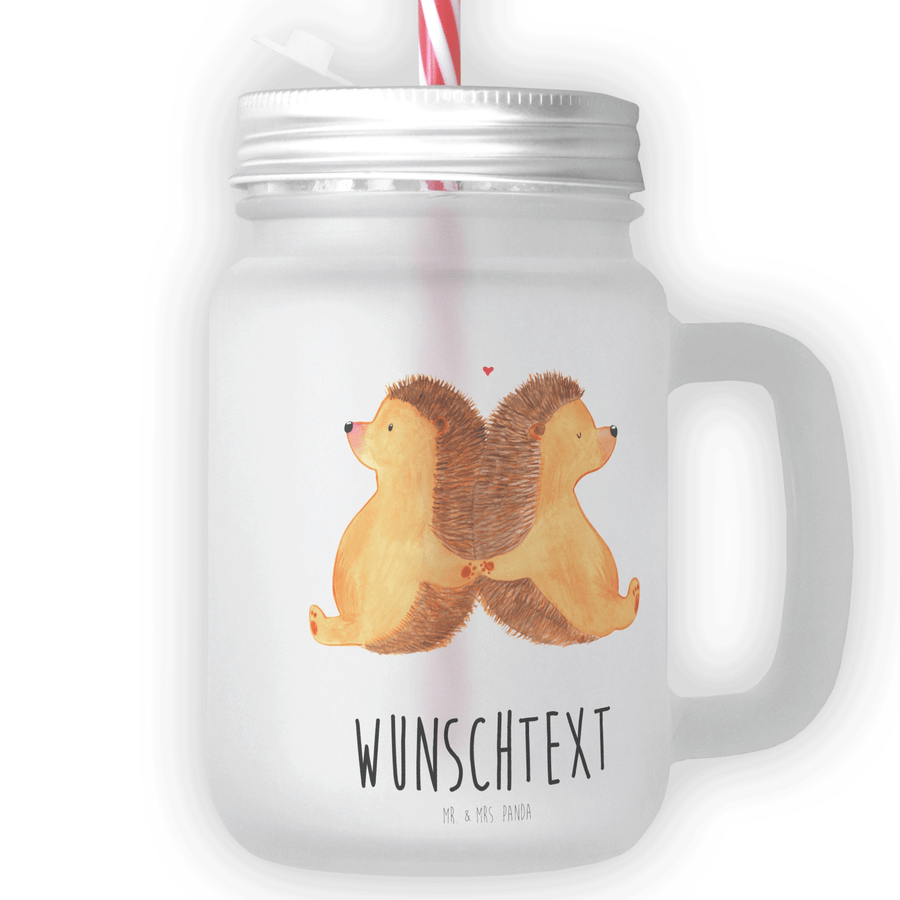 Personalisiertes Trinkglas Mason Jar Igel händchenhaltend