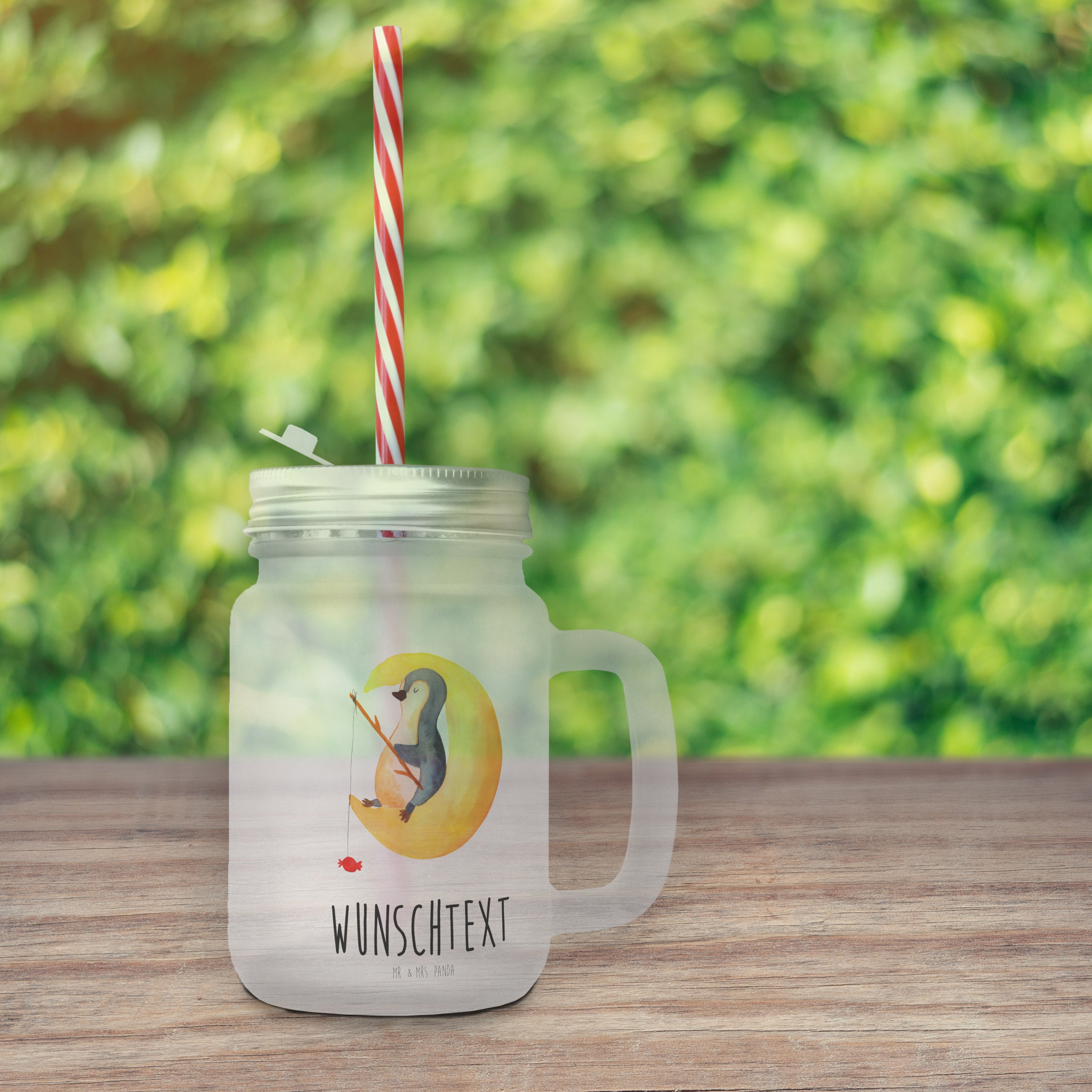 Personalisiertes Trinkglas Mason Jar Pinguin Mond