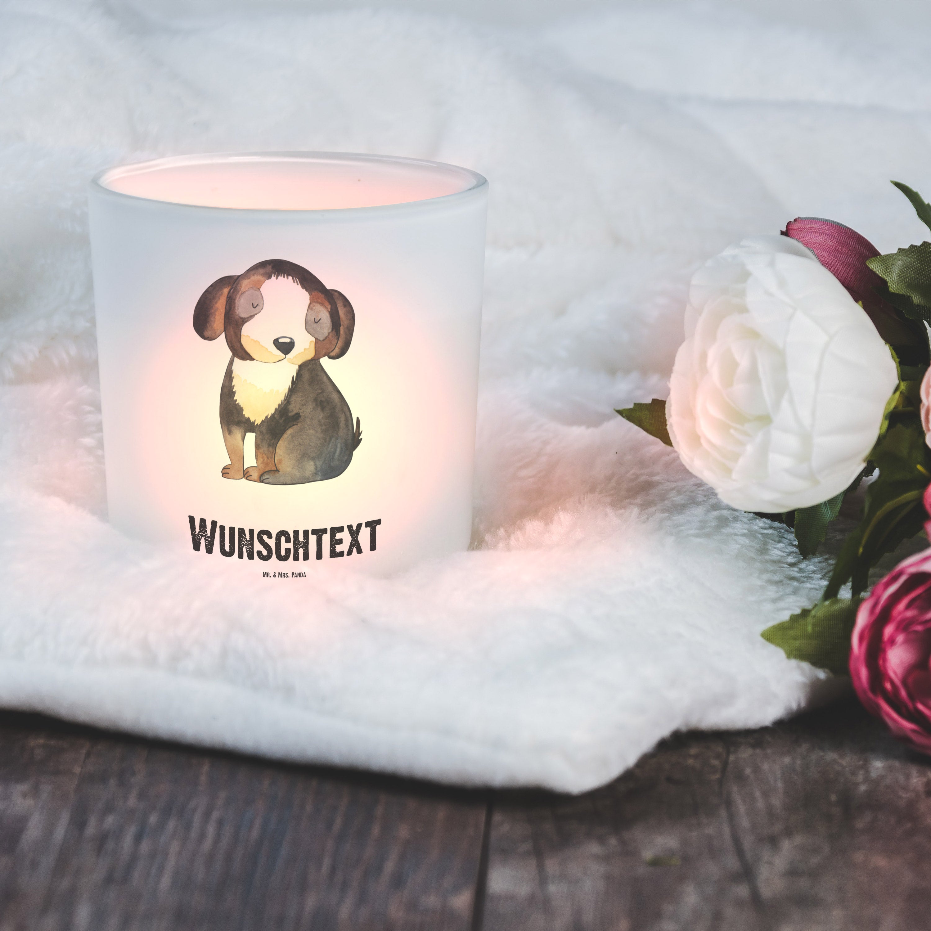 Personalisiertes Windlicht Hund entspannt