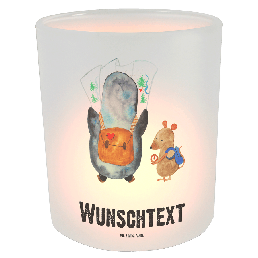 Personalisiertes Windlicht Pinguin & Maus Wanderer Personalisiertes Windlicht, Personalisiertes Windlicht Glas, Personalisiertes Teelichtglas, Personalisierter Teelichthalter, Personalisiertes Kerzenglas, Personalisierte Kerze, Personalisiertes Teelicht, Windlicht mit Namen, Windlicht Glas mit Namen, Teelichtglas mit Namen, Teelichthalter mit Namen, Teelichter mit Namen, Kerzenglas mit Namen, Kerze mit Namen, Teelicht mit Namen, Namenspersonalisierung, Name, selbst gestalten, Wunschtext, Bedrucken, Pinguin, Pinguine, Abenteurer, Abenteuer, Roadtrip, Ausflug, Wanderlust, wandern