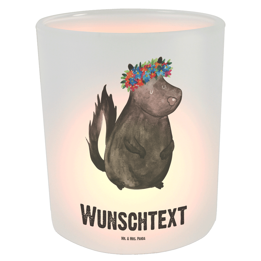 Personalisiertes Windlicht Stinktier Blumenmaedchen Personalisiertes Windlicht, Personalisiertes Windlicht Glas, Personalisiertes Teelichtglas, Personalisierter Teelichthalter, Personalisiertes Kerzenglas, Personalisierte Kerze, Personalisiertes Teelicht, Windlicht mit Namen, Windlicht Glas mit Namen, Teelichtglas mit Namen, Teelichthalter mit Namen, Teelichter mit Namen, Kerzenglas mit Namen, Kerze mit Namen, Teelicht mit Namen, Namenspersonalisierung, Name, selbst gestalten, Wunschtext, Bedrucken, Stinktier, Skunk, Wildtier, Raubtier, Stinker, Stinki, Yoga, Namaste, Lebe, Liebe, Lache