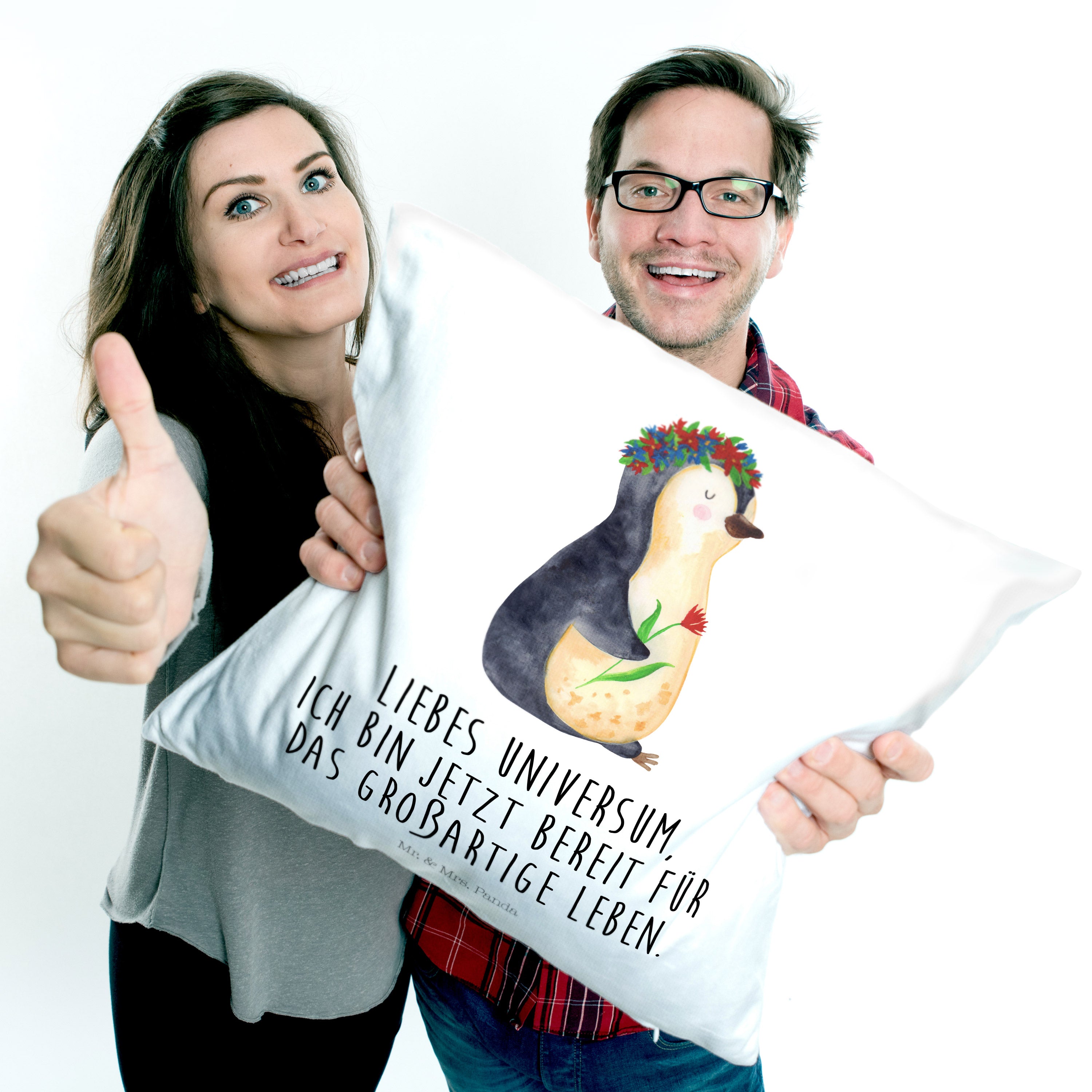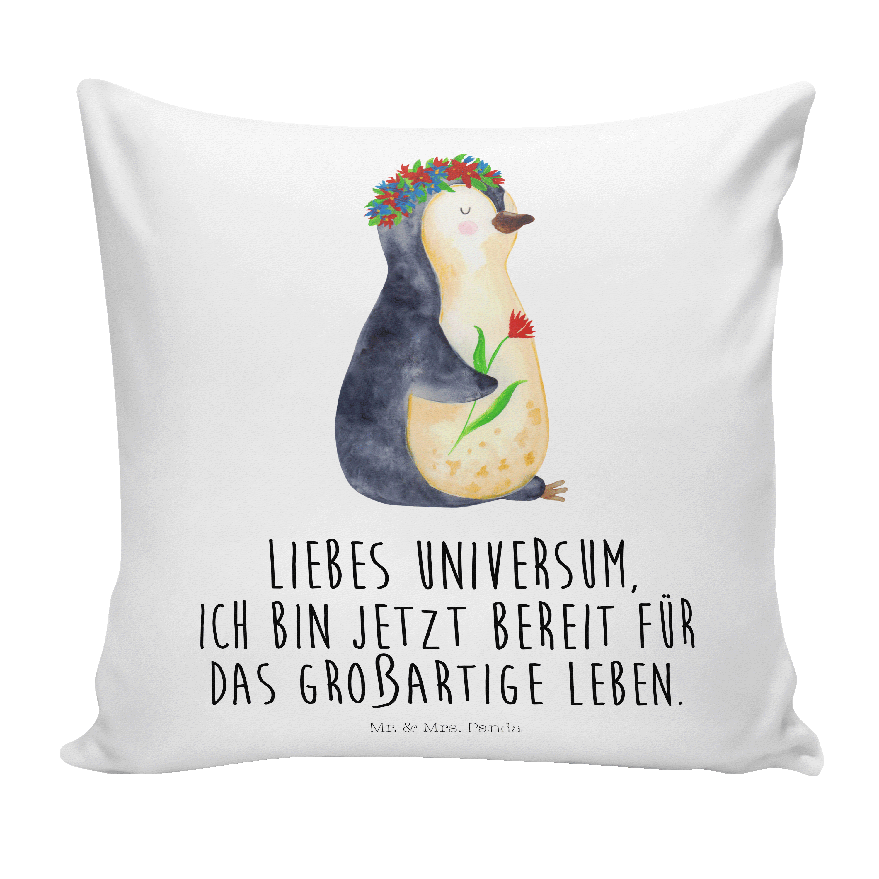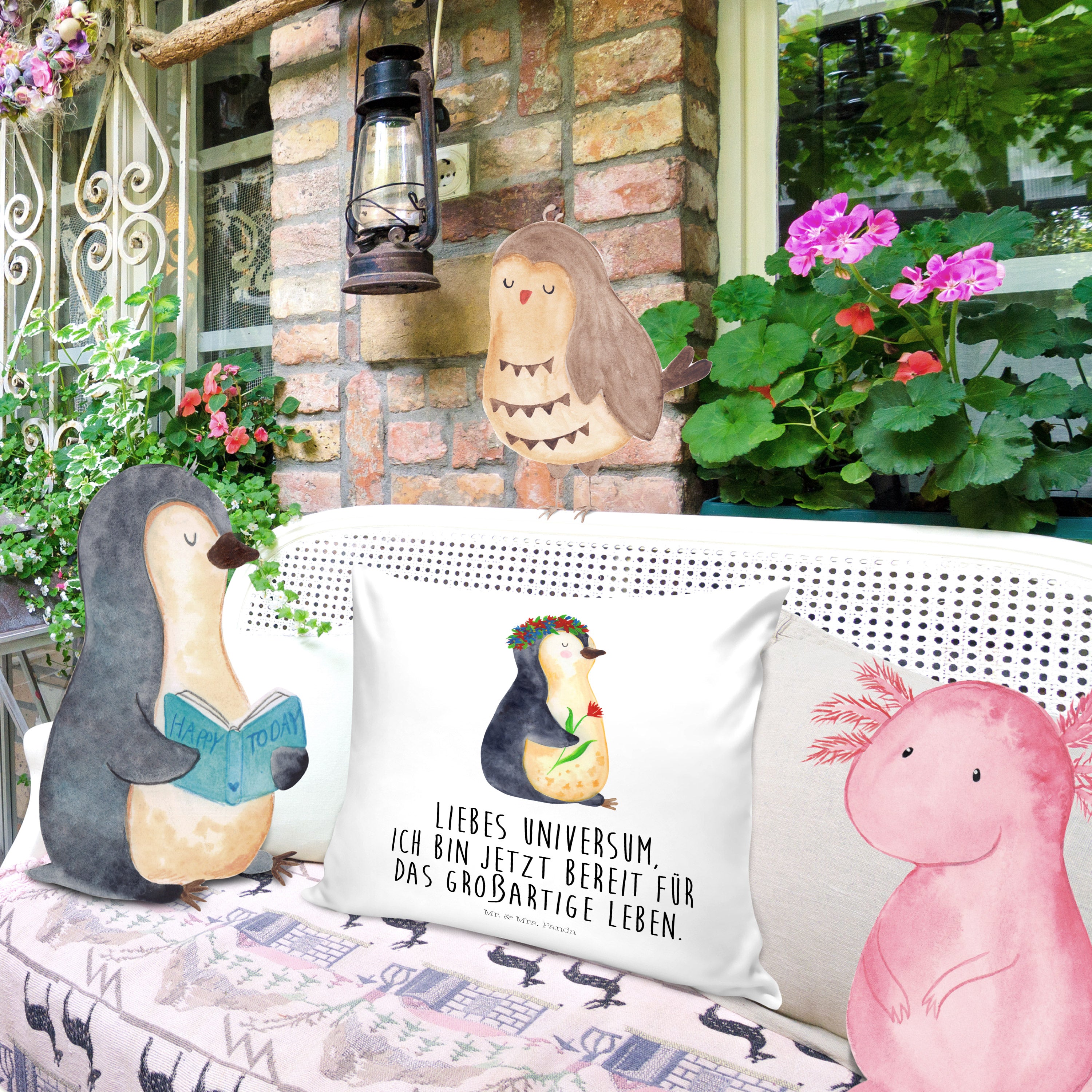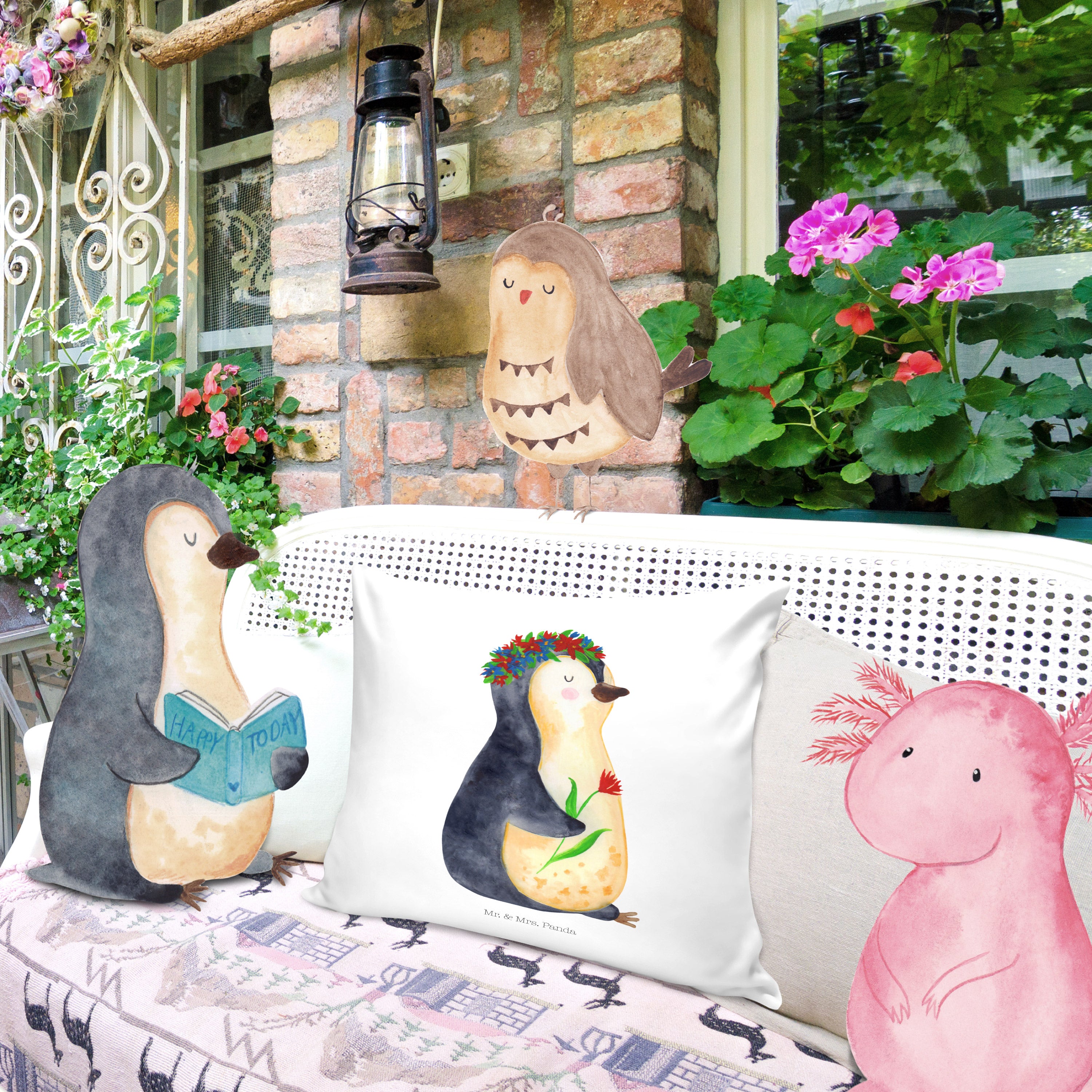 40x40 Kissen Pinguin Blumenkranz - mit Spruch - Eisblau