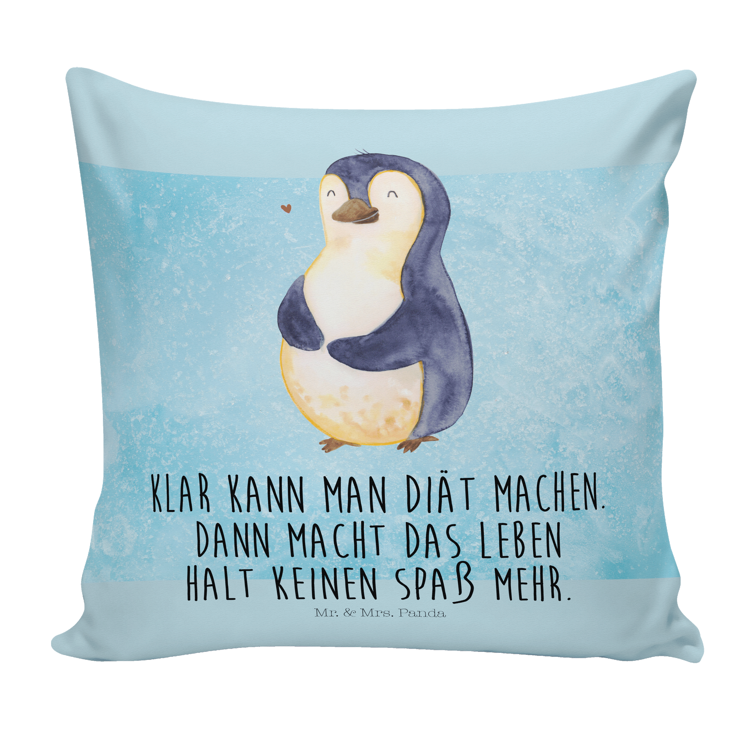 40x40 Kissen Pinguin Diät - mit Spruch - Eisblau